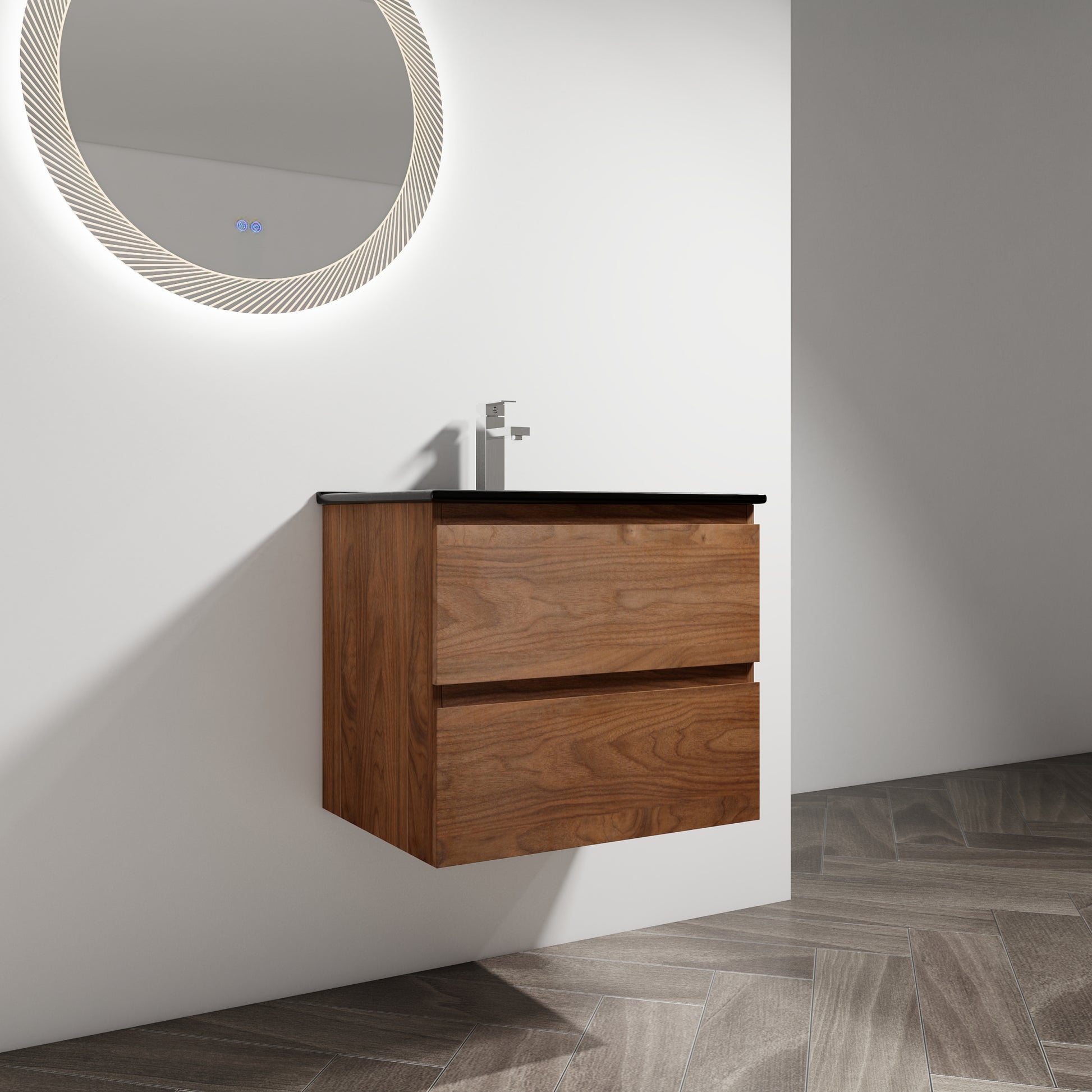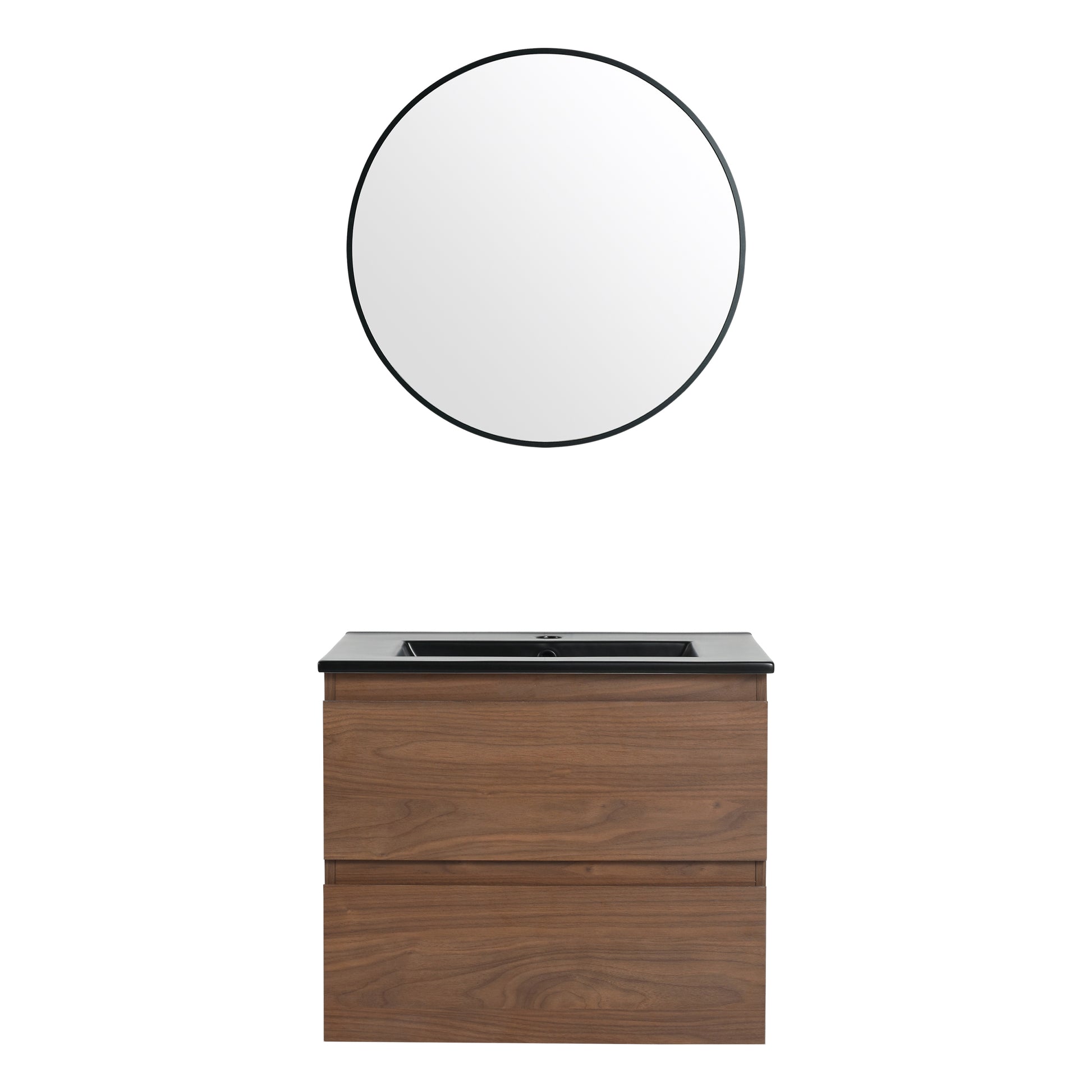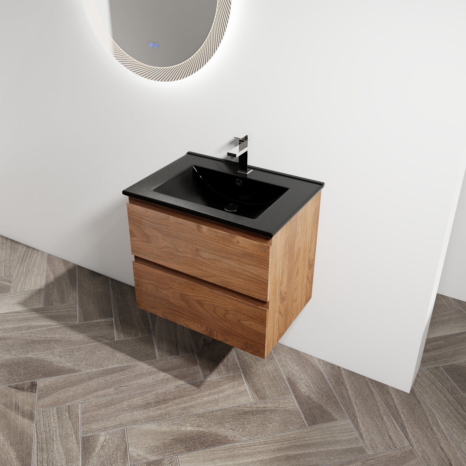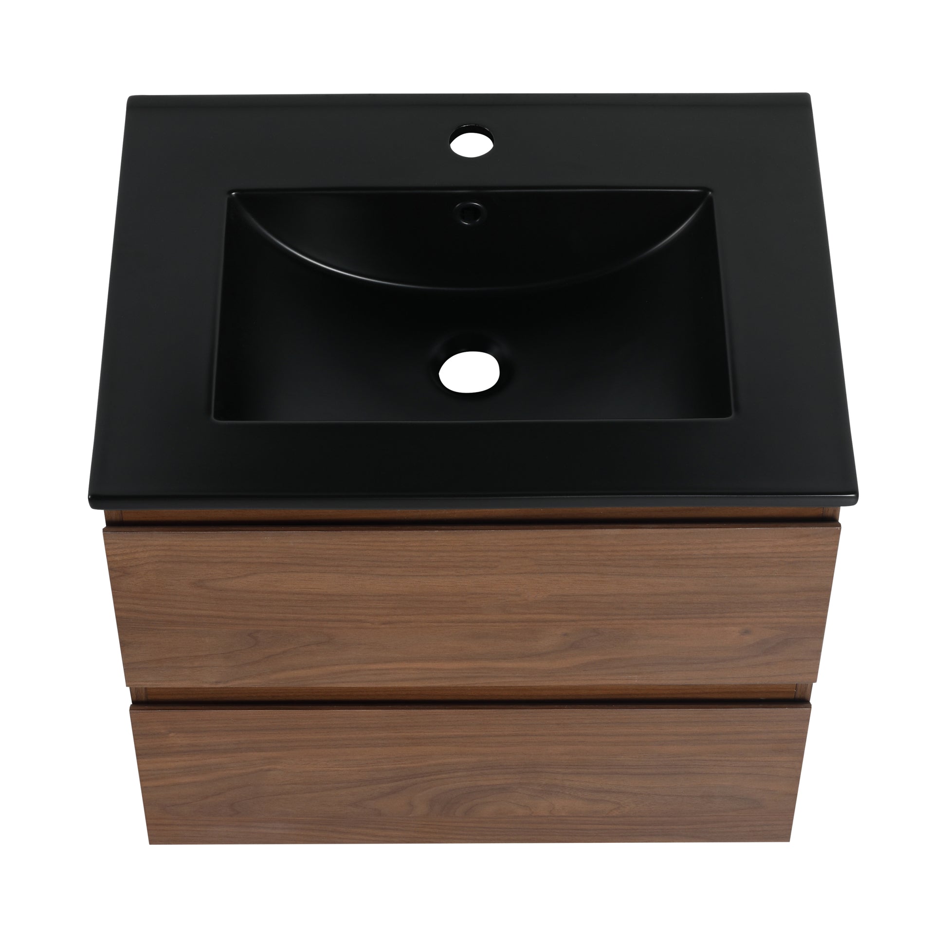 24" Wall Mounted Bathroom Vanity With Black Ceramic Sink, 2 Soft Close Drawers, Kd Package 2 Brown Oak Bathroom Wall Mounted Modern Plywood