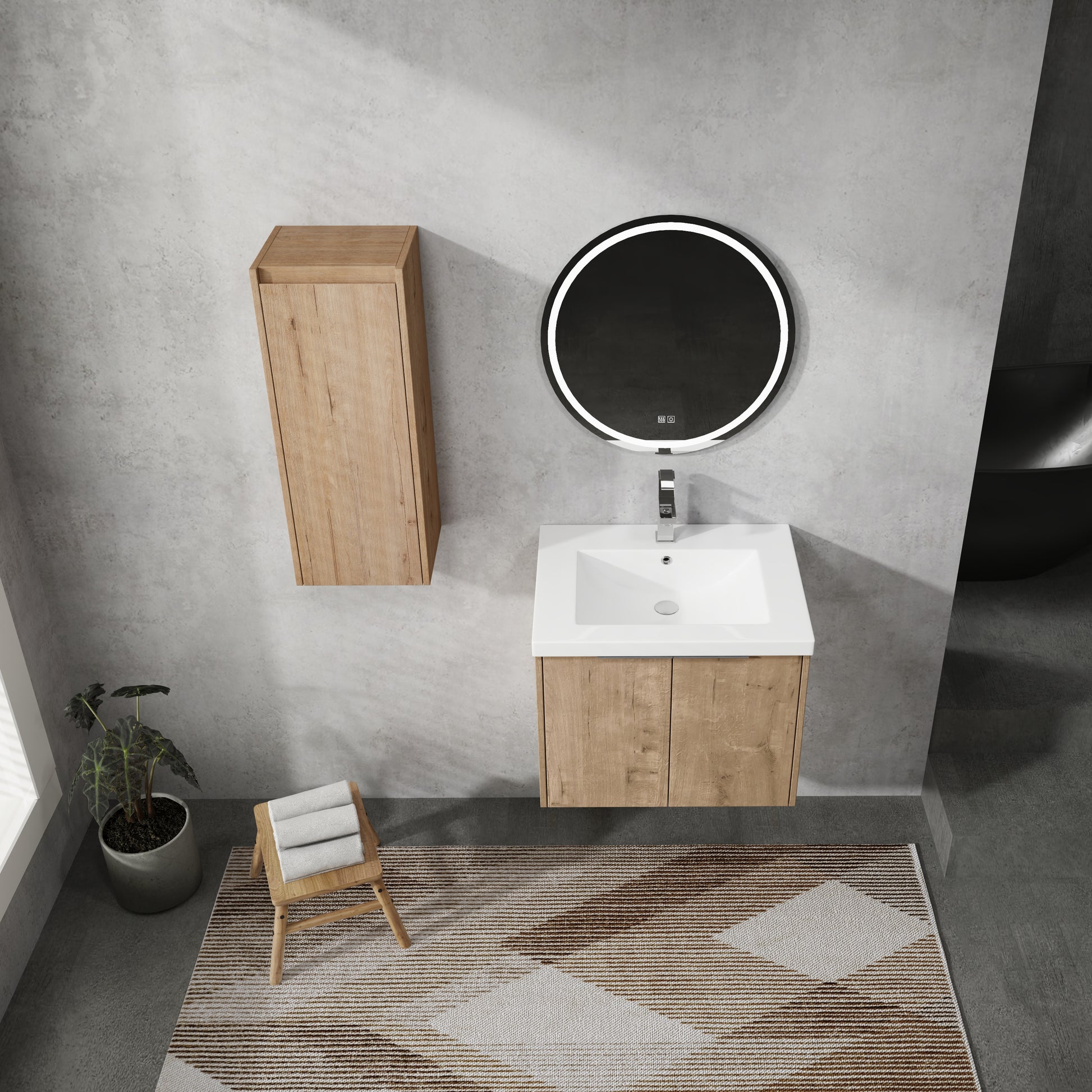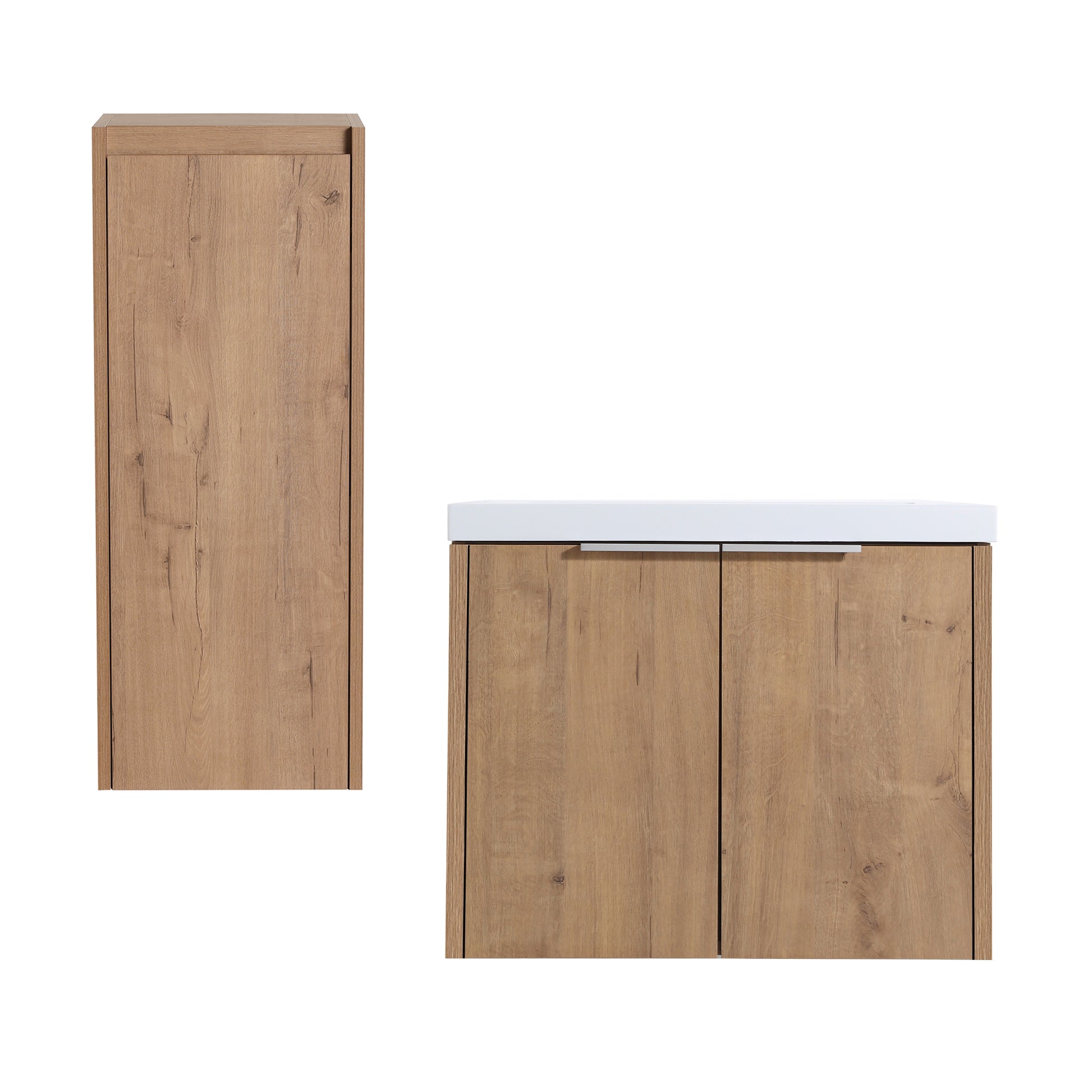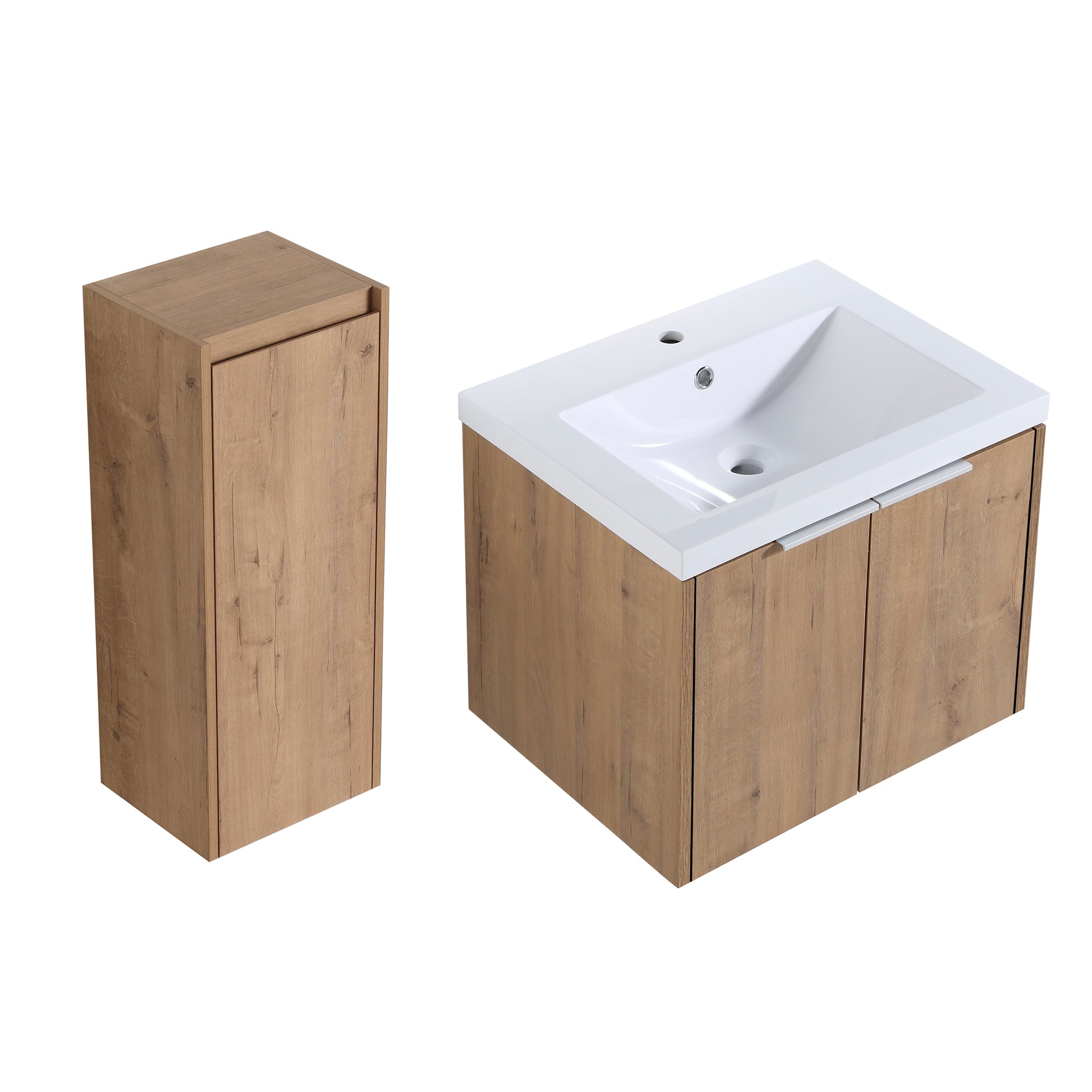 24" Wall Mounted Bathroom Vanity With Sink And Side Cabinet, Soft Close Doors,00112Imo 00624Imo Combination Cabinet Kd Packing Imitative Oak Bathroom Modern Plywood Plywood