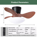 24'' Walnut Small Ceiling Fan With Lights And Remote Led 18W Modern Flush Mount Ceiling Fan Adjustable Color,Dc Quiet Motor Low Profile Ceiling Fan For Bedroom Kitchen Dining Patio,Fcc Walnut Black Abs Steel Q235