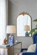 24" X 36" Arched Wall Mirror With Gold Metal Frame, Wall Mirror For Living Room Bedroom Hallway Gold Iron