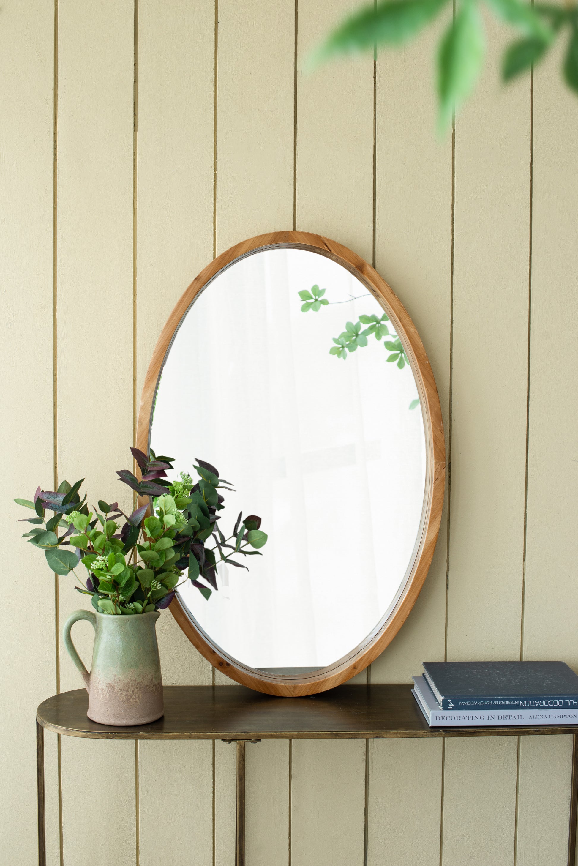 24" X 36" Oval Wall Mirror With Wood Frame, Farmhouse Wood Mirror For Bathroom Entryway Console Lean Against Wall Brown Wood Glass