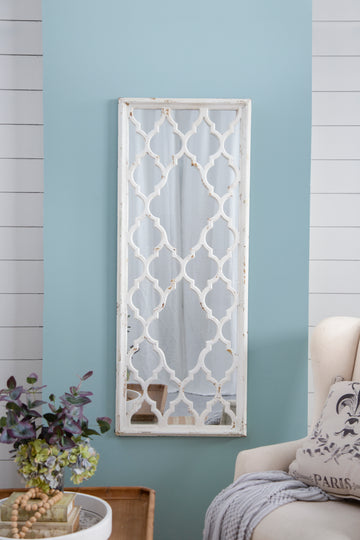 24" X 60" Distressed White Floor Mirror, Full Body Mirror For Bathroom Bedroom Living Room White Wood Glass