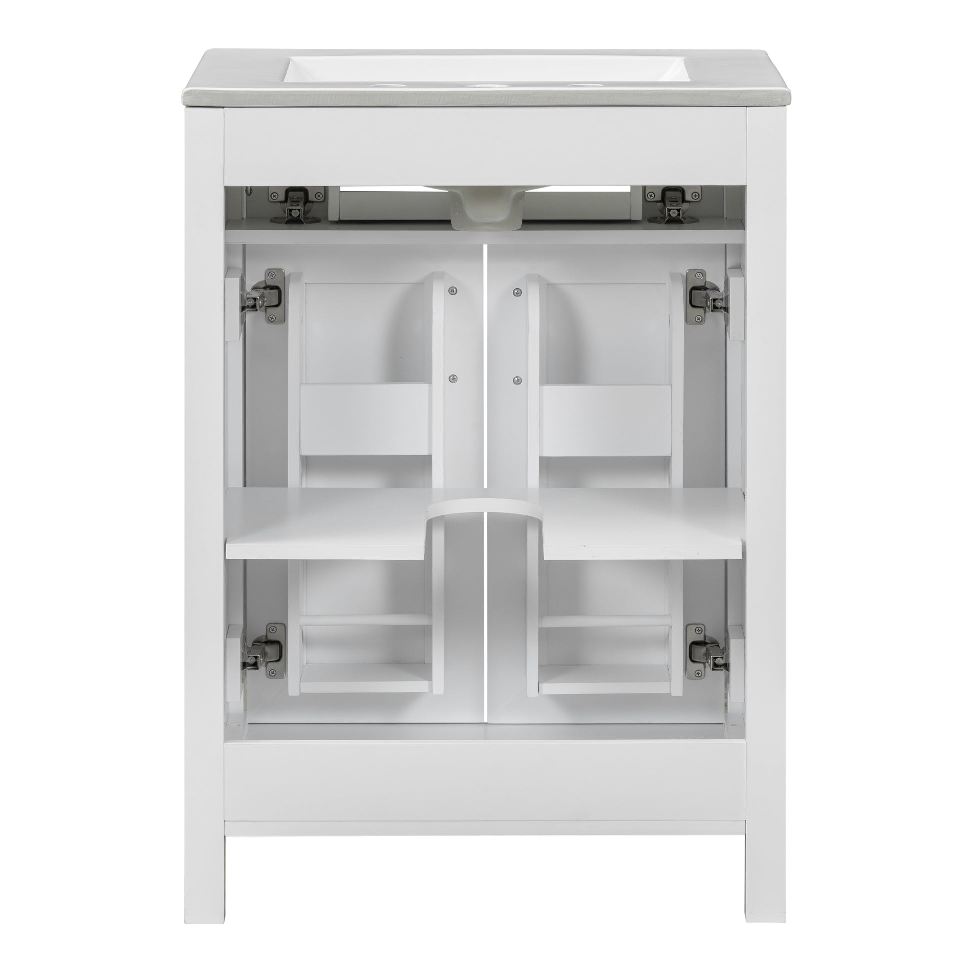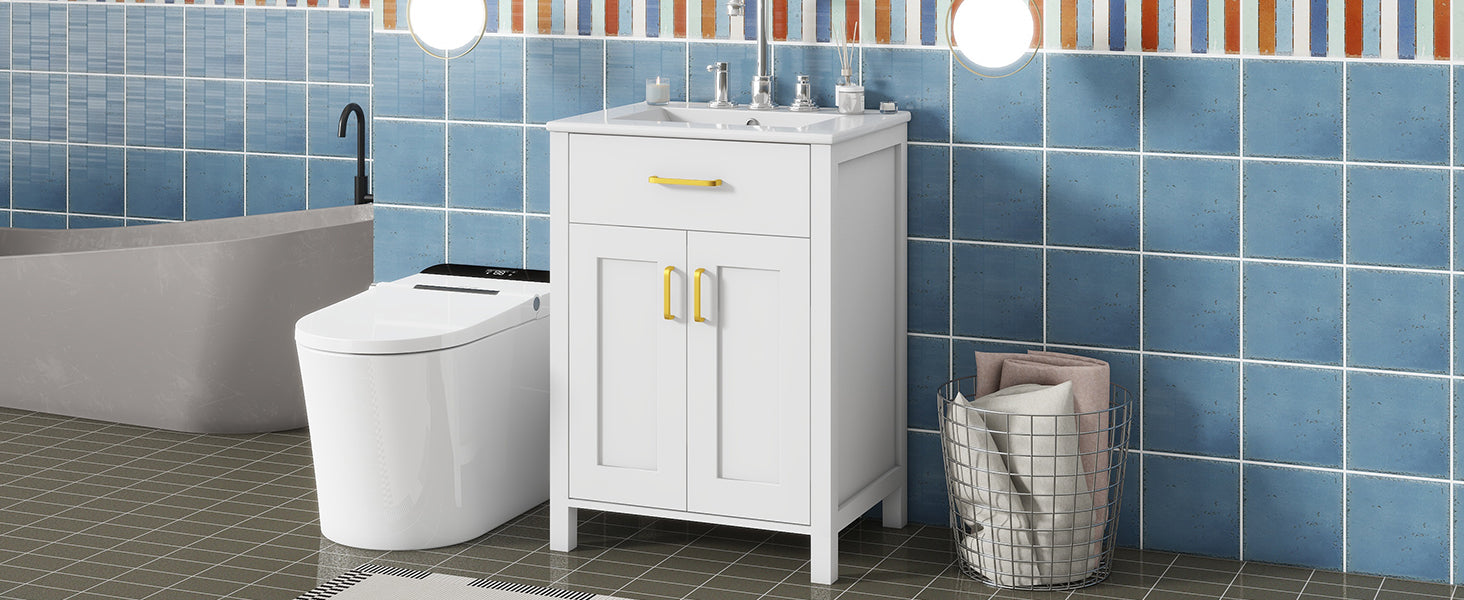24"Bathroom Vanity Combo With Ceramic Sink, Luxurious Space Saving Vanity W24"*D18"*H34"Inch, 2 Soft Close Doors Gold White Bathroom Solid Wood Mdf