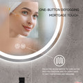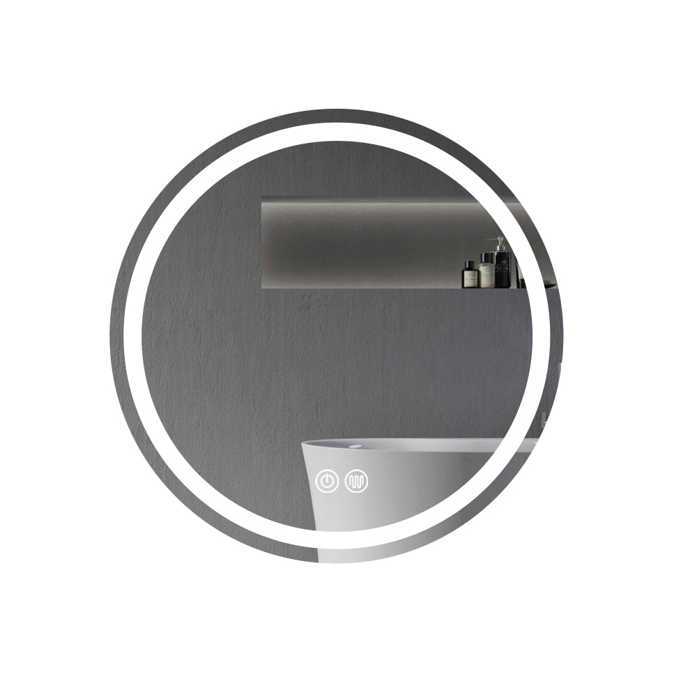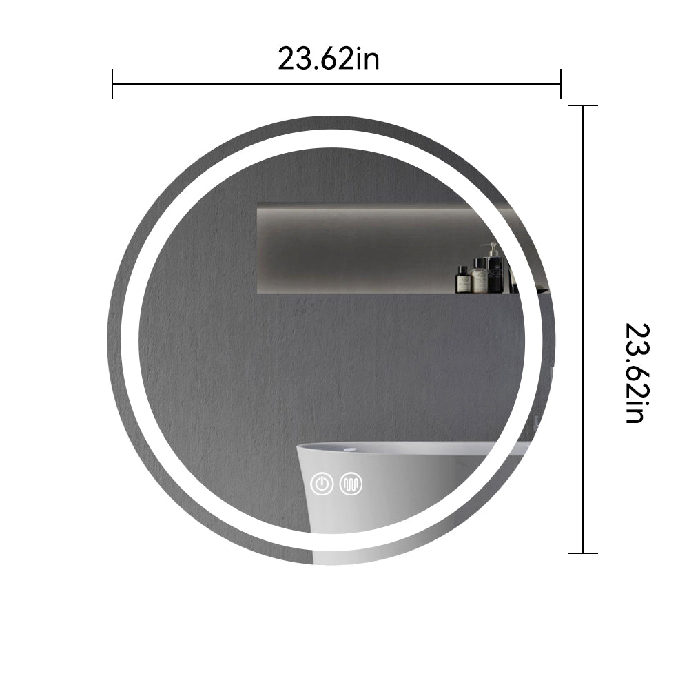 24In. H Led Single Bathroom Vanity Mirror Polished Crystal Bathroom Round Vanity Mirror For Smart Lighting On Bathroom Walls Transparent Glass