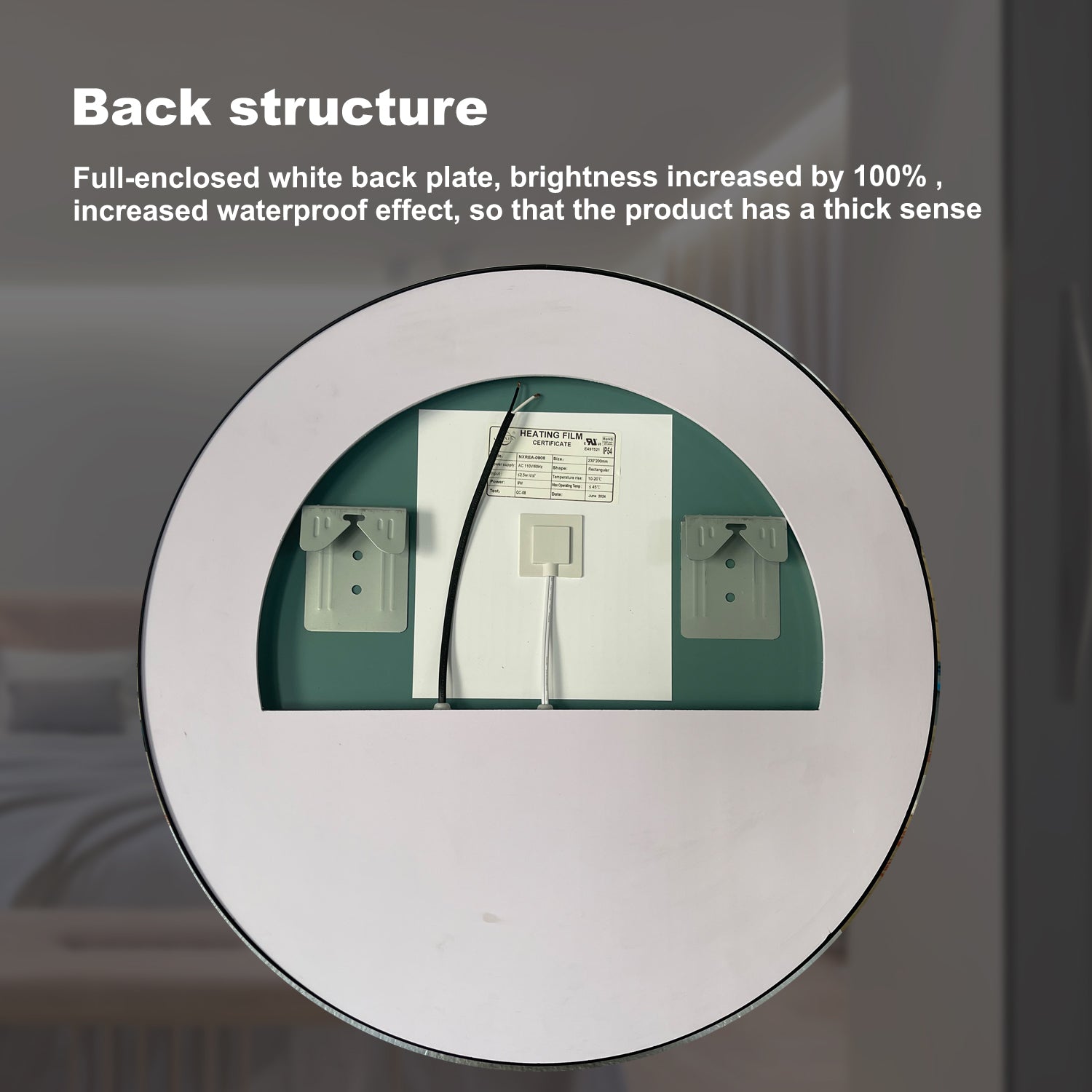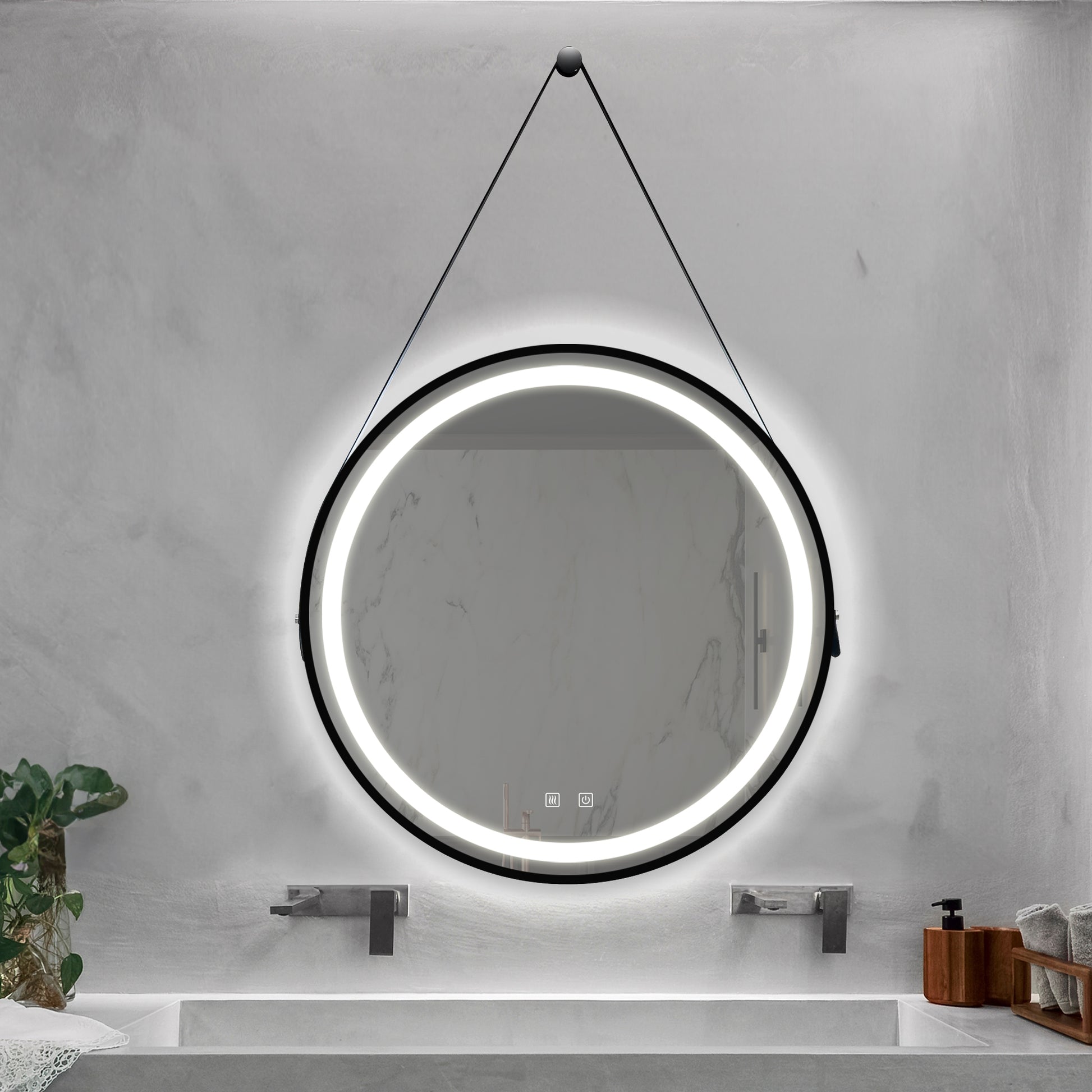24Inch Bathroom Led Classy Vanity Mirror With Focused Backplane,Black Aluminum Alloy Frame,High Lumen,Dimmable Touch,Wall Switch Control, Anti Fog ,Cri 95 Adjustable 3000K 4500K 6000K ,Ip54 Waterproof Black And Silver Glass