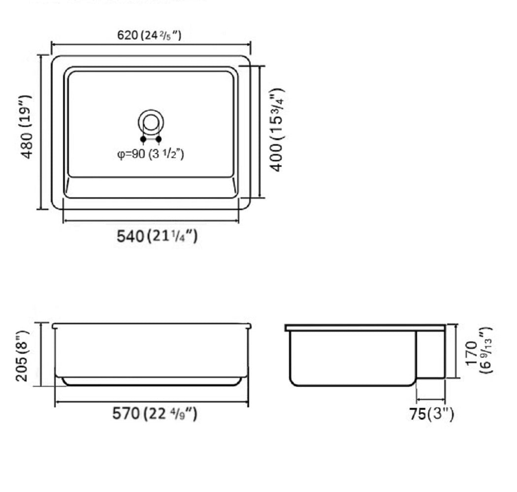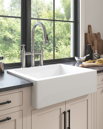 24"L X 19" W Farmhouse Apron Front White Ceramic Kitchen Sink White Ceramic