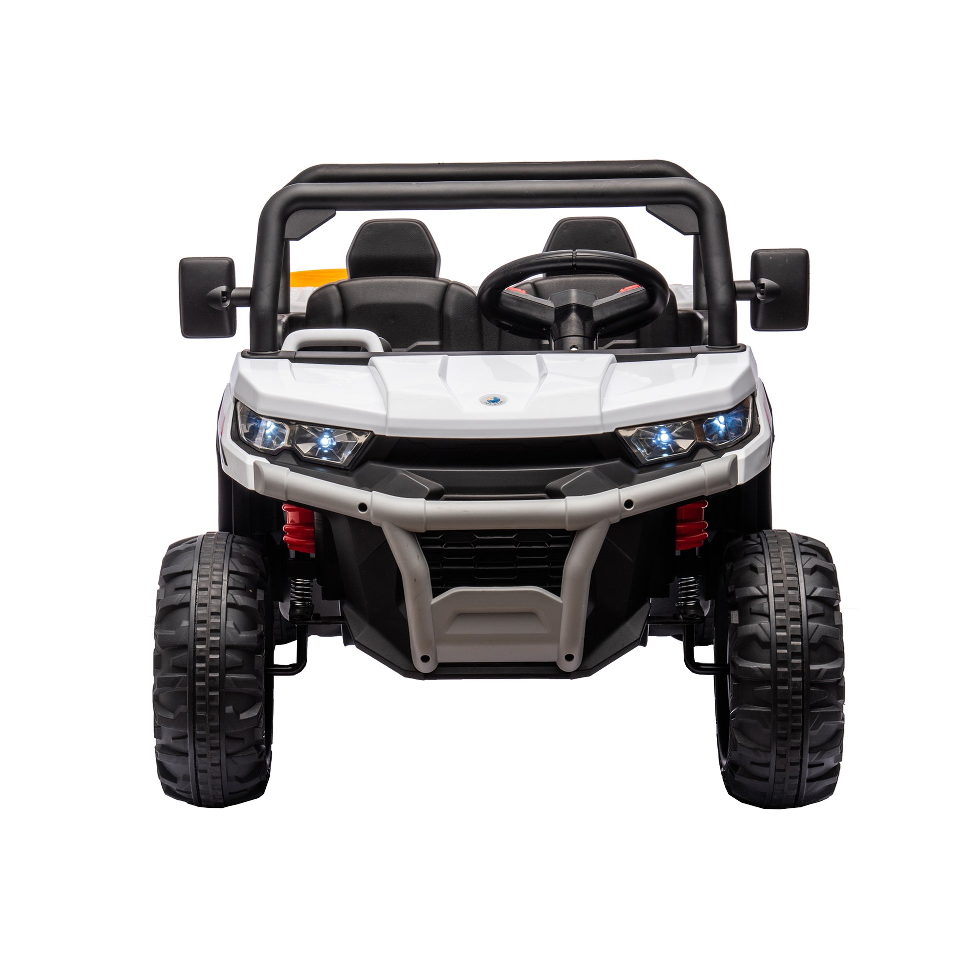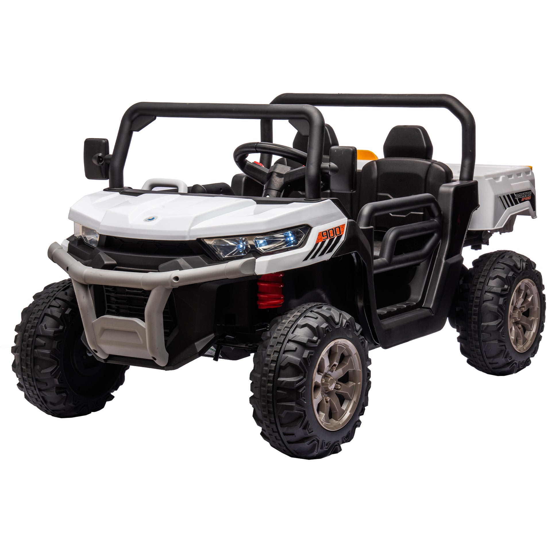 24V Ride On Truck 2 Seater Ride On Utv With 2X200W Motor Ride On Dump Truck With Dump Bed Shovel Ride On Car With Remote Control Electric Vehicle With Non Slip Tyre For Boys Girls White Plastic