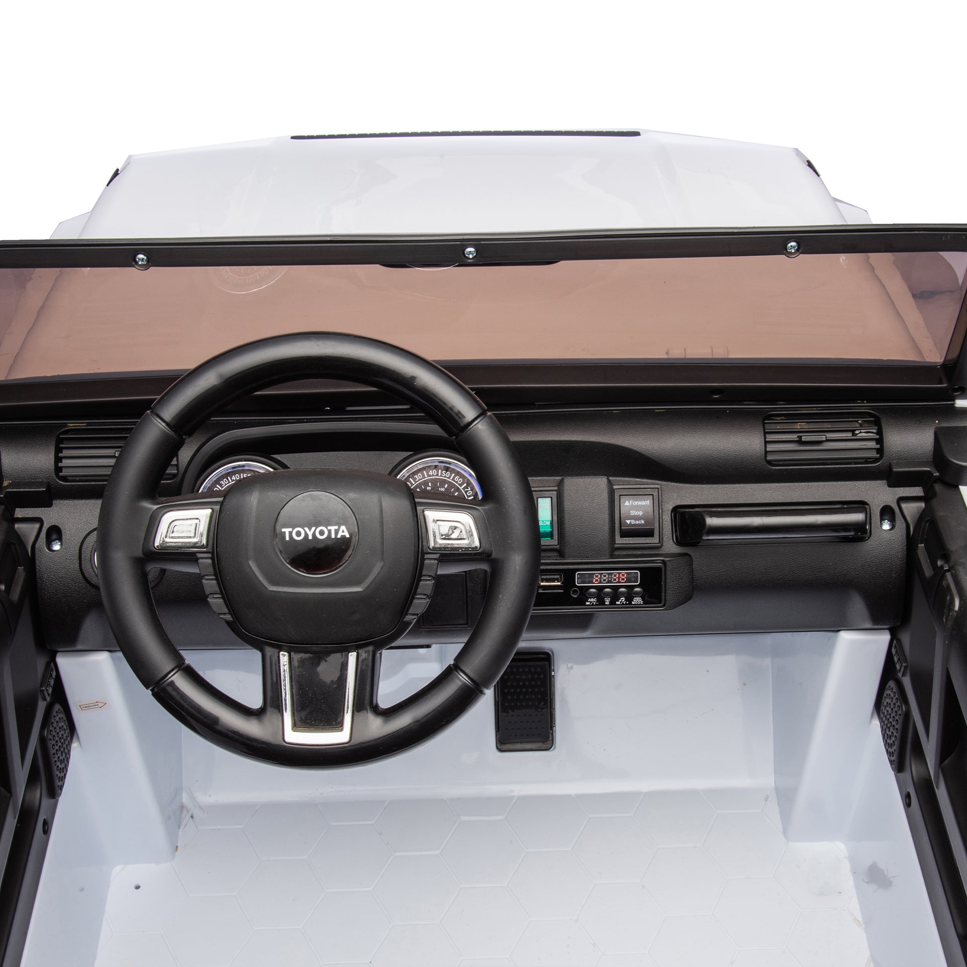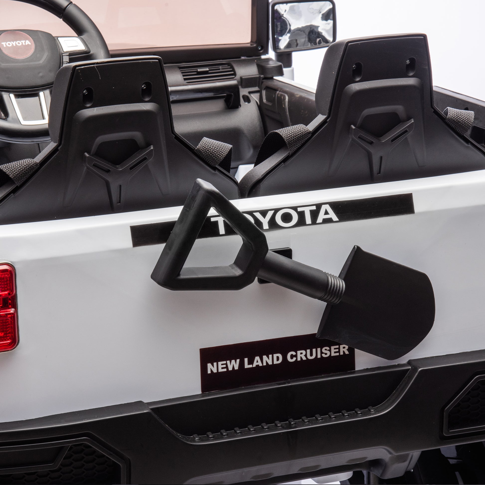 24V Two Seater Kids Ride On Car W Parents Remote Control, Licensed Toyota Lc250,220W Motors,With Shovel,Three Point Seat Belt,Slow Start,Speed Adjustment,Bluetooth,Music For Kids Aged 3 . White Polypropylene
