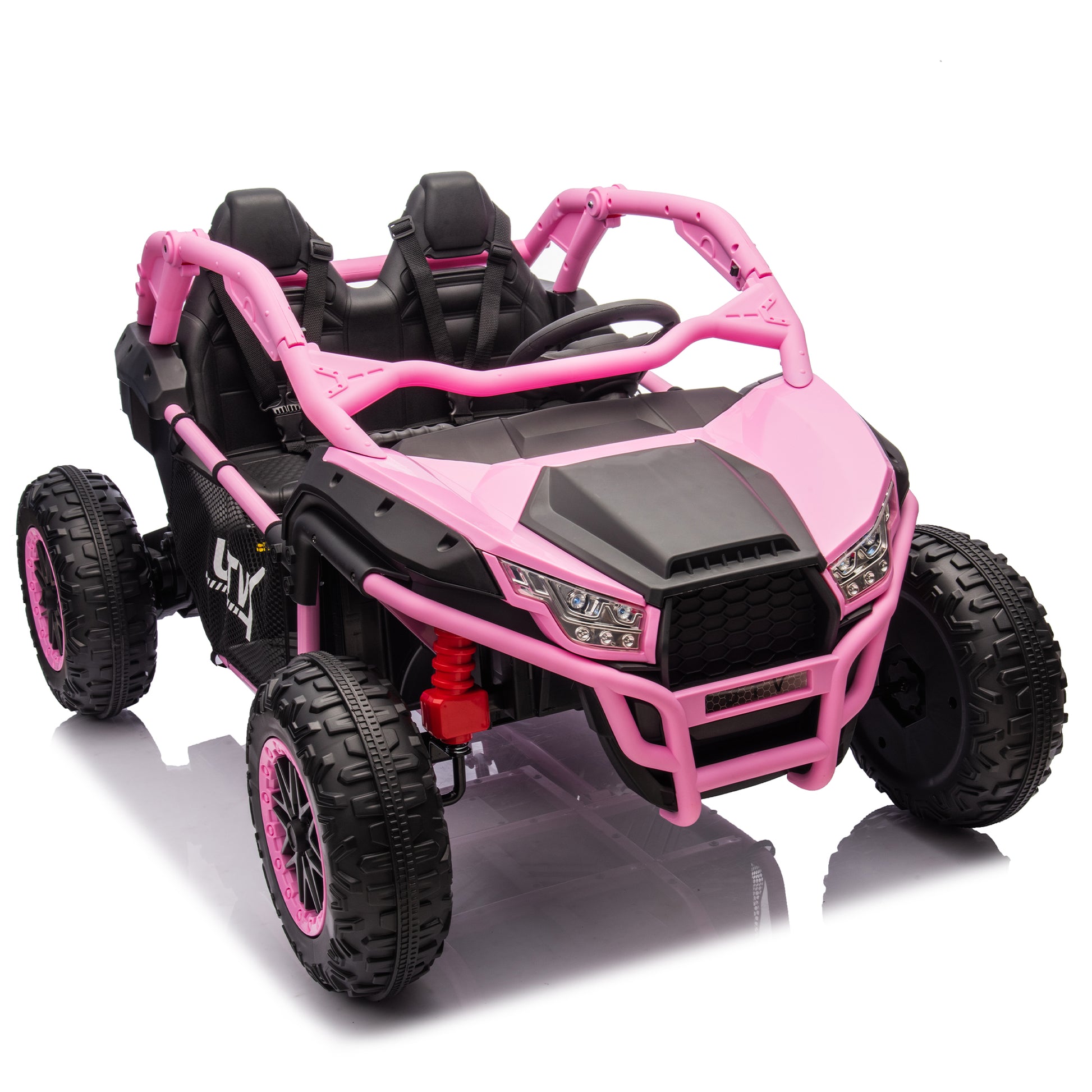 24V Two Seater Kids Ride On Utv W Parents Control,20In Seat Width,400W Super High Power,Four Wheel Suspension,Bluetooth,Mp3,Usb,Led Light,Horn,Rear Storage Space,Speeds 3.73 4.97Mph For Kids Aged 3 . Pink 100 149 Lbs Polypropylene