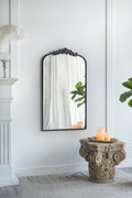 24"X 42" Classic Design Mirror With And Baroque Inspired Frame For Bathroom, Entryway Console Lean Against Wall Black Mdf Glass