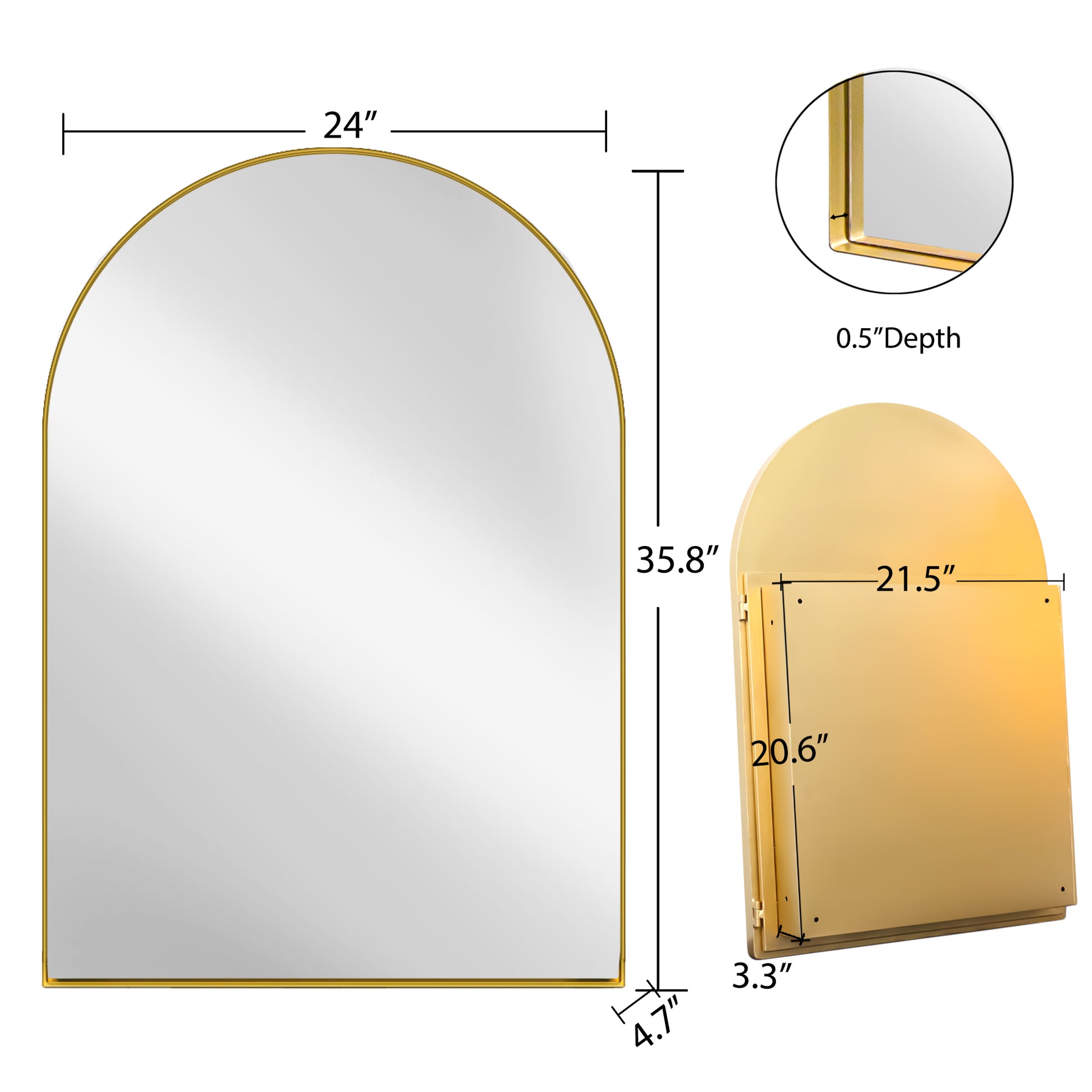 24X36 Inch Arched Recessed Medicine Cabinet, Metal Framed Bathroom Wall Cabinet With Mirror And Adjustable Shelves, Wall Mirror With Storage For Bathroom, Matte Gold Gold 2 Adjustable Shelves Bathroom Wall Mounted Metal