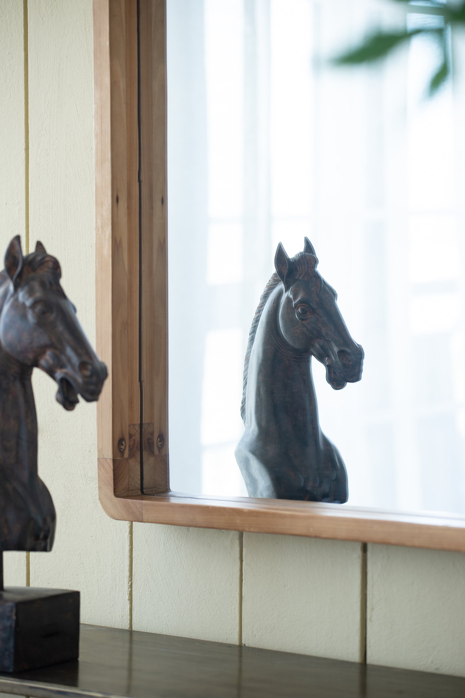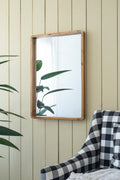 24"X36" Rectangle Wood Mirror, Farmhouse Wall Decor For Living Room Bedroom Entryway Brown Wood Glass