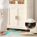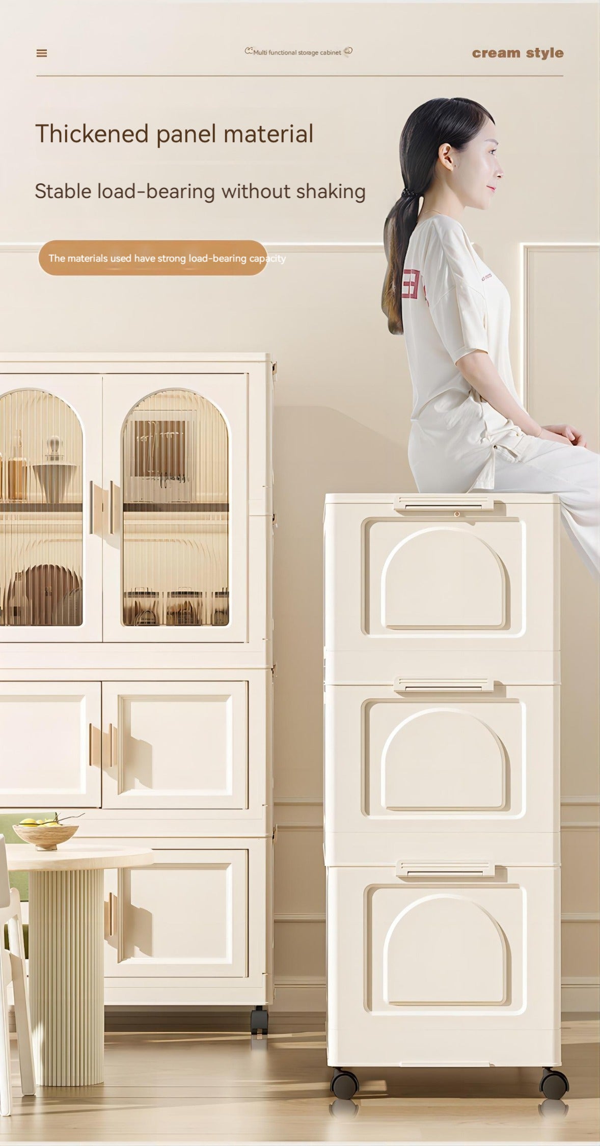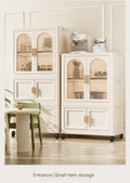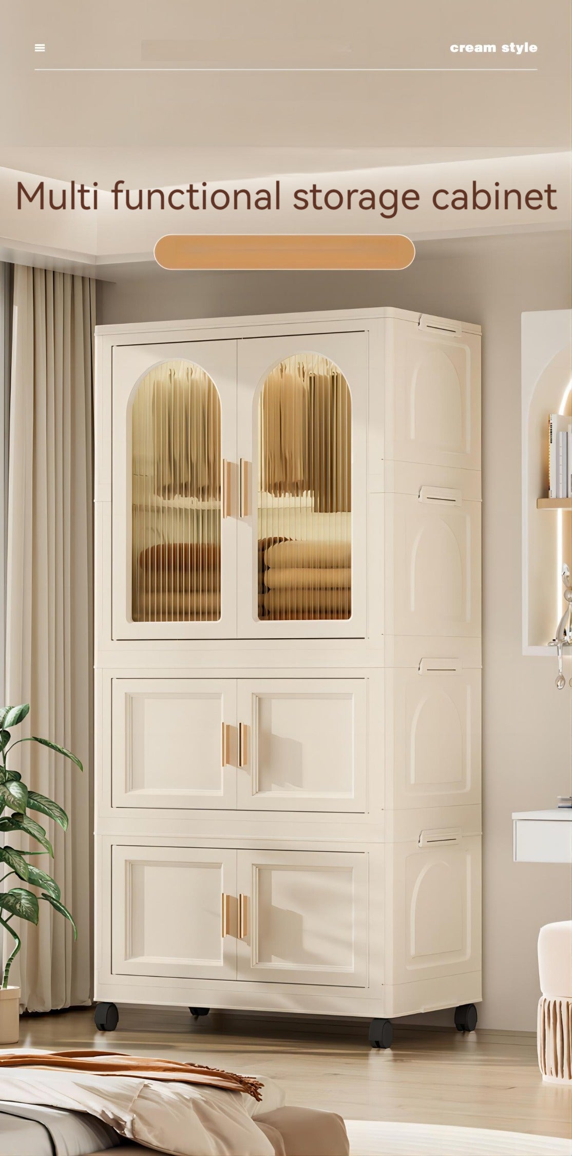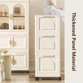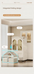 25.59" Side Wide Folding Wardrobe25.59" 15.75" 57.09", With Magnetic Door, Plastic Storage Cabinet With Wheels One Layer Of Wardrobe Two Layers Of Folding Boxes 10 Hangers Cream White Plastic