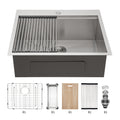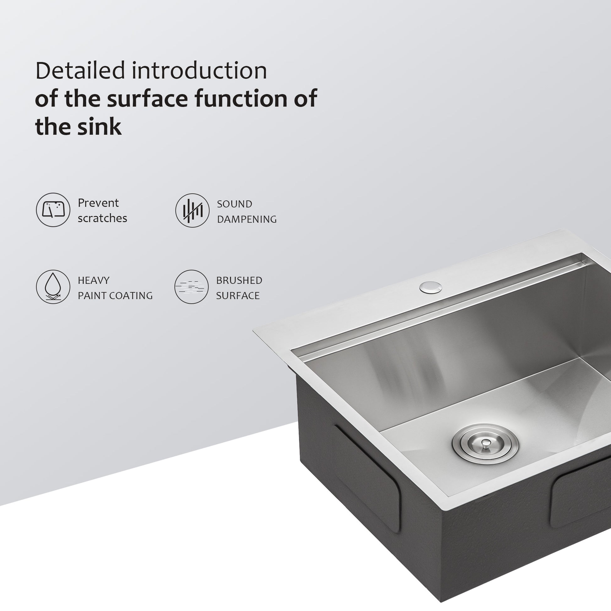 25 Inch Drop Kitchen Sink 25 "X 22" Kitchen Sink Stainless Steel 18 Gauge Workstation Sink Drop In Topmount Single Bowl Kitchen Sink Brushed Nickel Stainless Steel