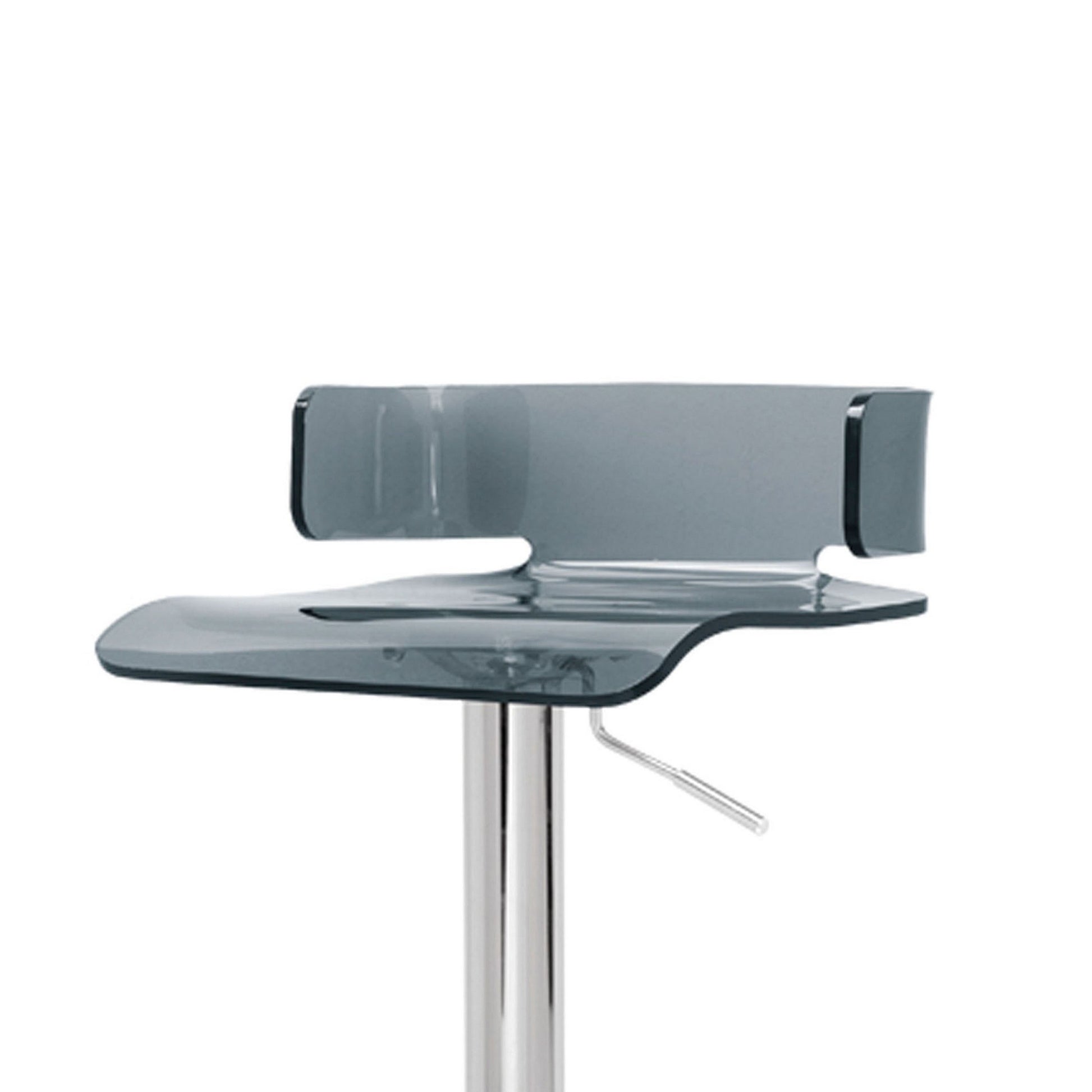 26 Inch Acrylic Adjustable Barstool, Chrome Pedestal Base, Gray Gray Metal
