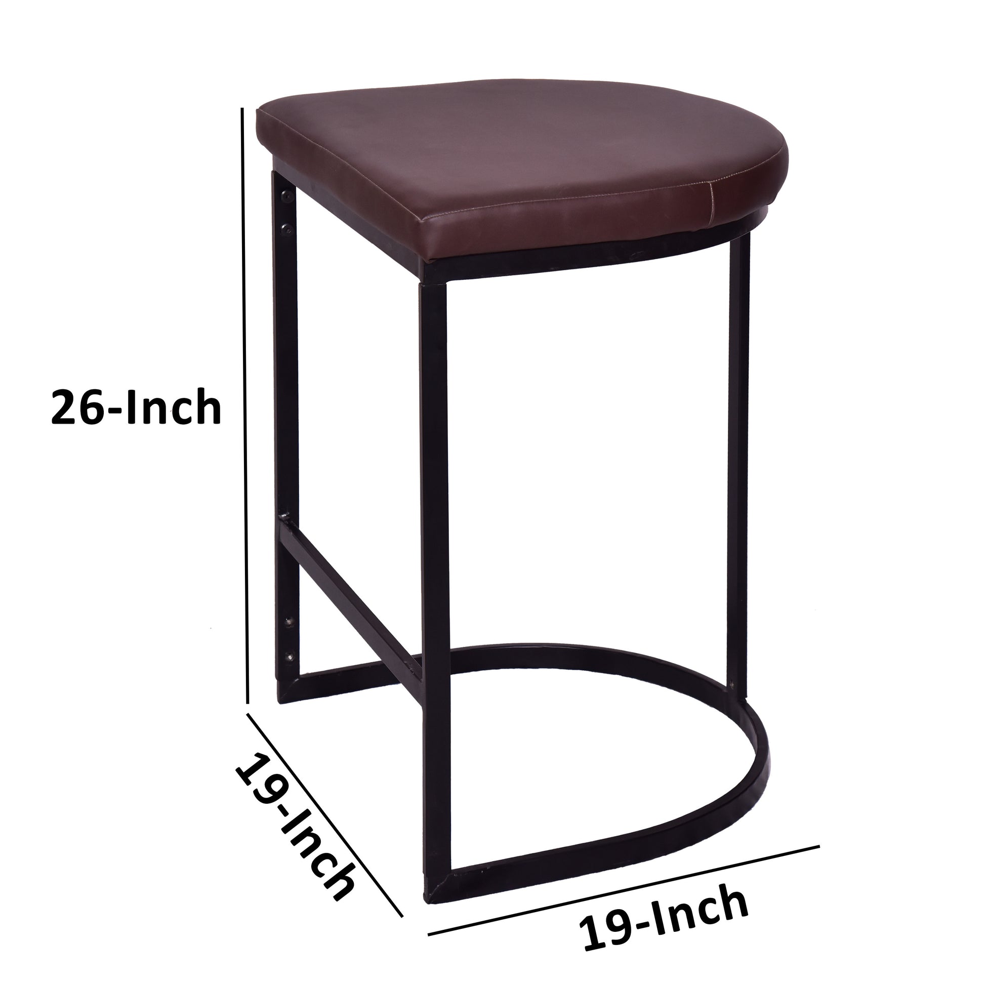 26 Inch Counter Height Stool With Vegan Faux Leather Upholstery, Black Iron Frame, Dark Brown Black Brown Iron