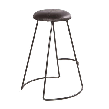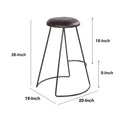 26 Inch Modern Counter Height Stool, Genuine Leather Upholstery, Metal Frame, Baseball Stitching, Black Black Iron