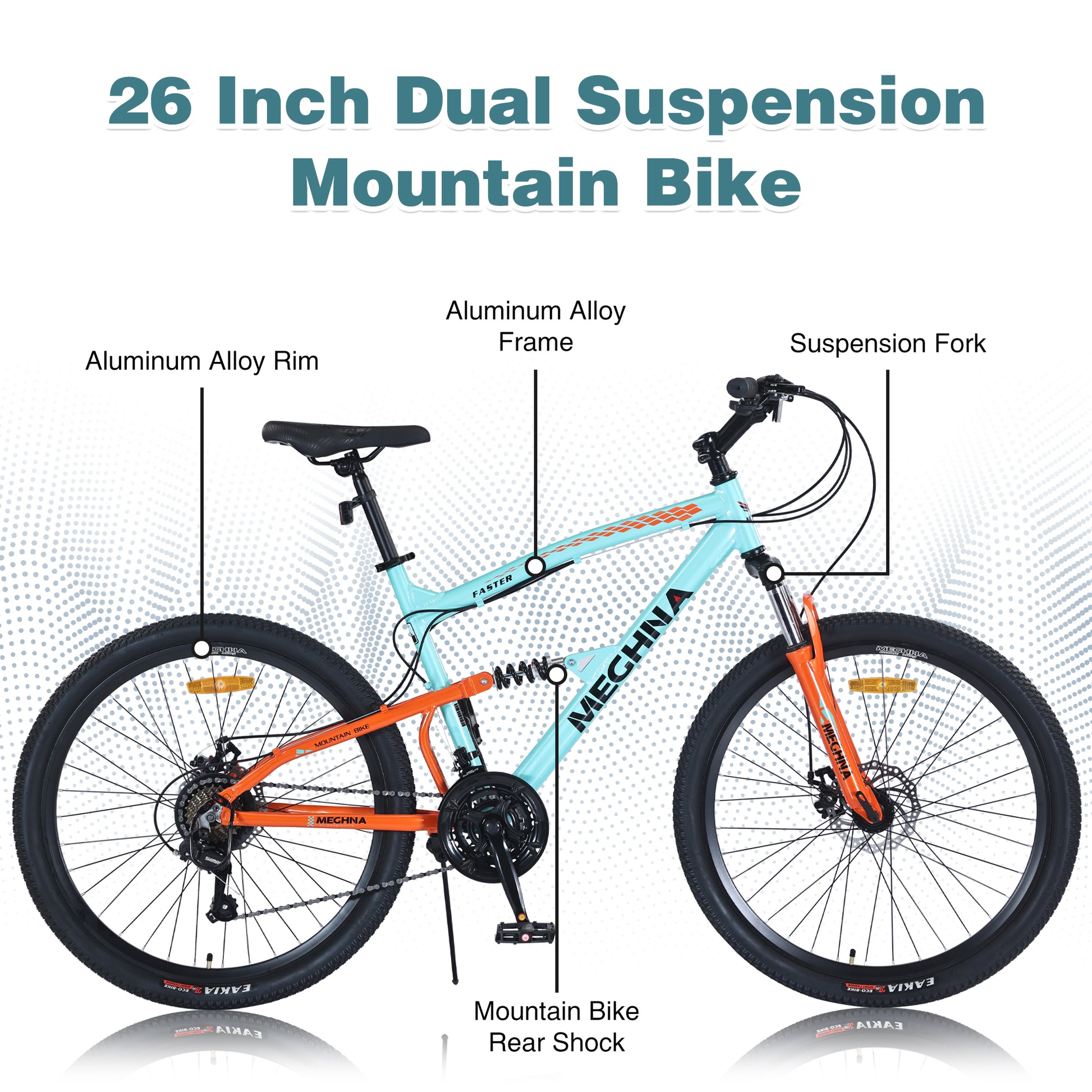 26 Inch Mountain Bike 21 Speed Dual Suspension Aluminum Alloy Frame For Men And Women'S Bike Cycling Cyan Garden & Outdoor Aluminium Alloy
