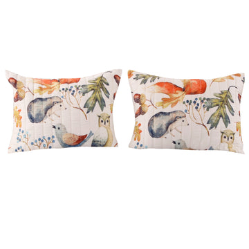 26 X 20 Inches Standard Pillow Sham With Fox And Owl Print, Multicolor Multicolor Fabric
