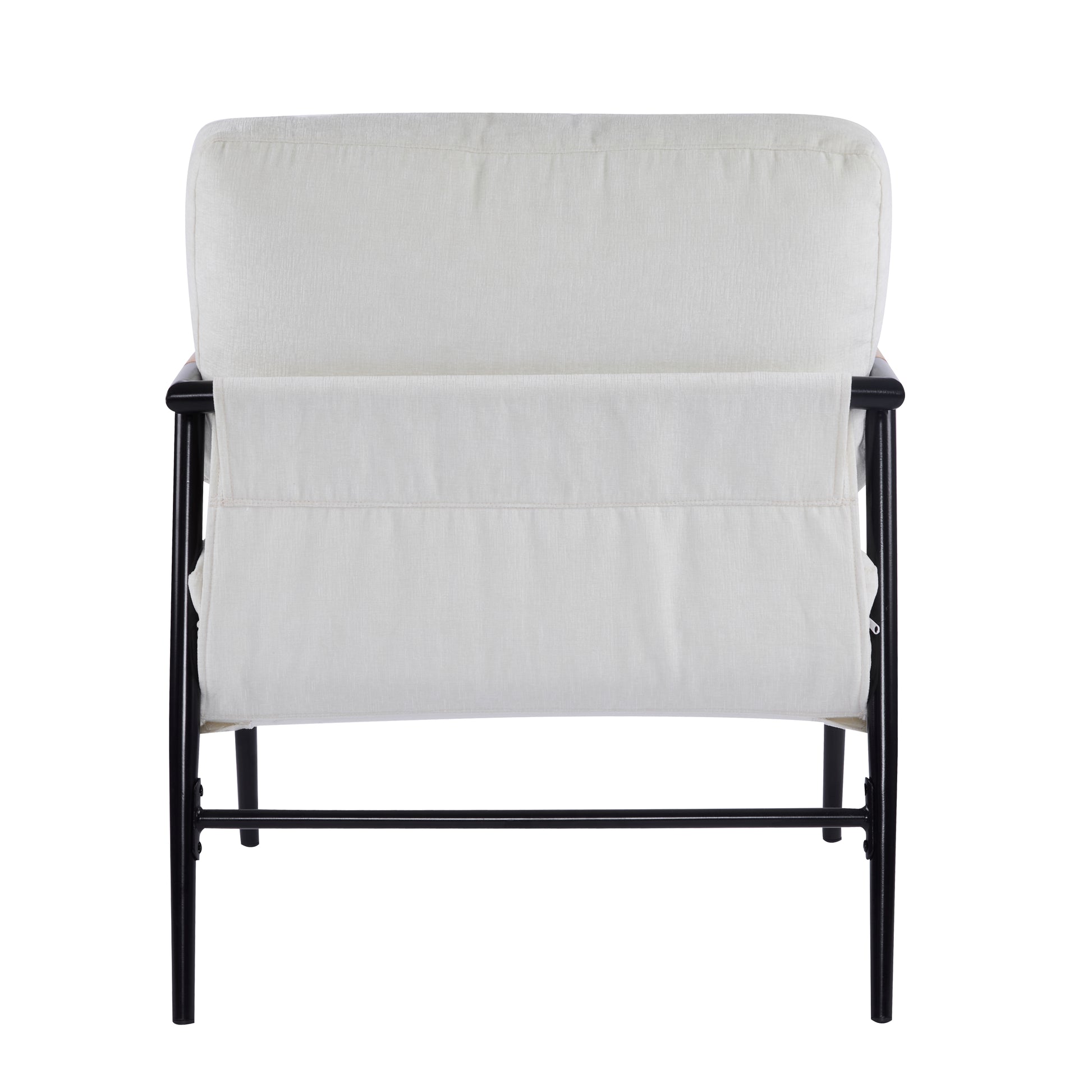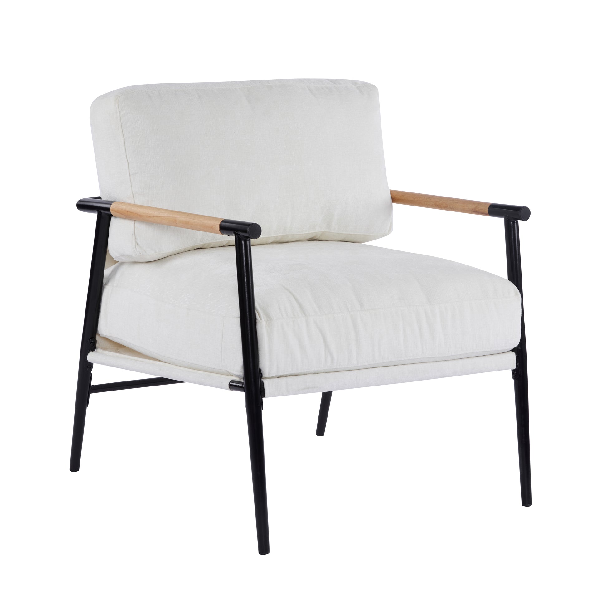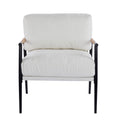 27.56" Modern Accent Chair With Plush Cushions, Minimalist Metal Frame, And Wooden Armrest Design Perfect For Cozy Living Room, Bedroom, Or Office Seating White Metal,Polyester,Solid Wood
