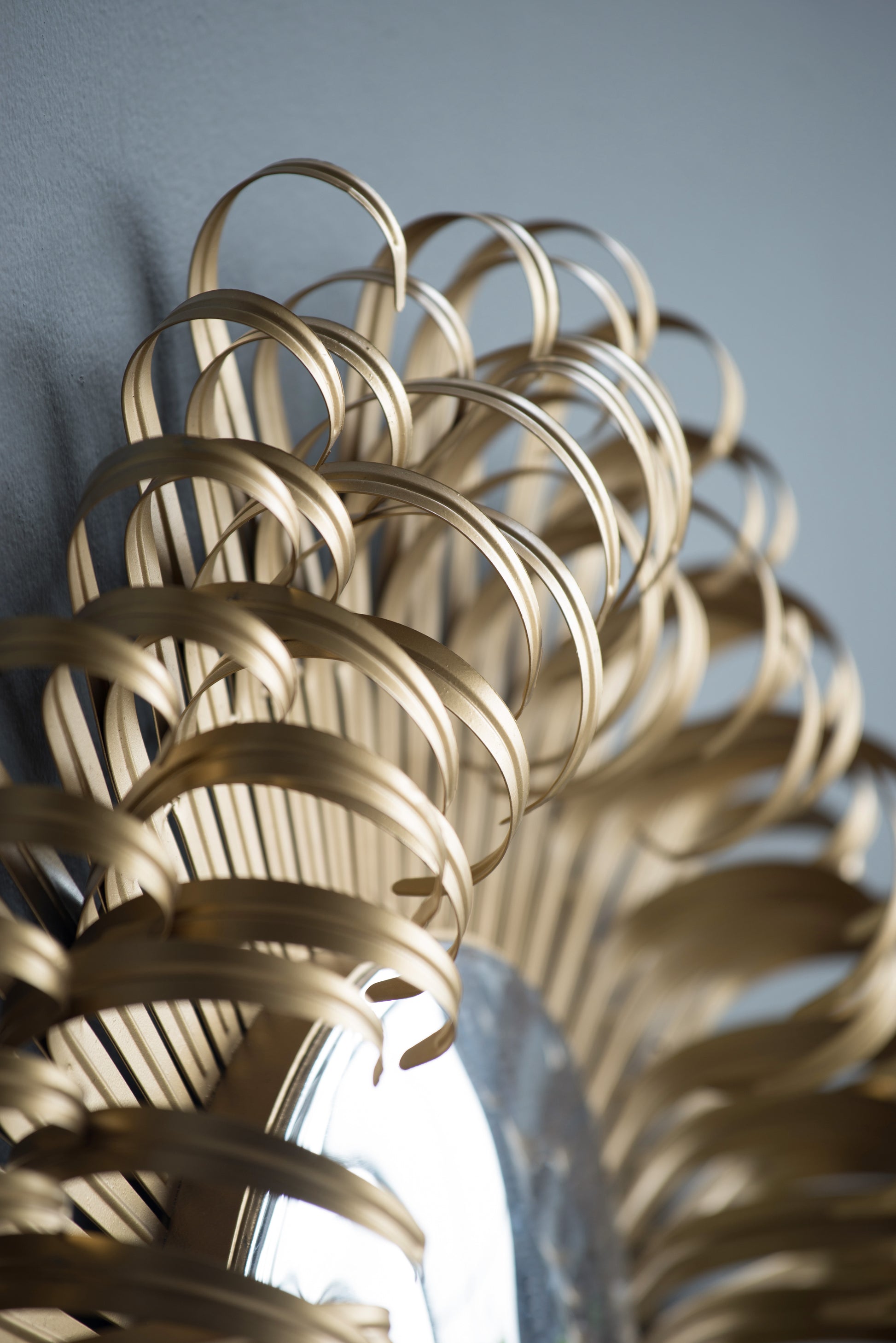 27" In Sunburst Design Wall Mirror Decorative Golden Finish For Entryway, Modern Living Room Gold Iron
