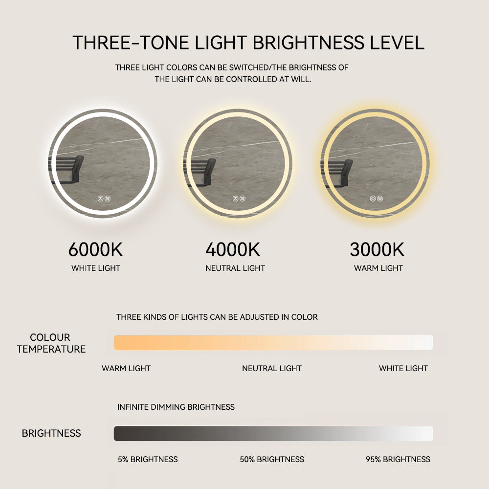 27 Inch H Led Single Bathroom Vanity Mirror Polished Crystal Bathroom Round Vanity Mirror For Smart Lighting On Bathroom Walls Transparent Glass