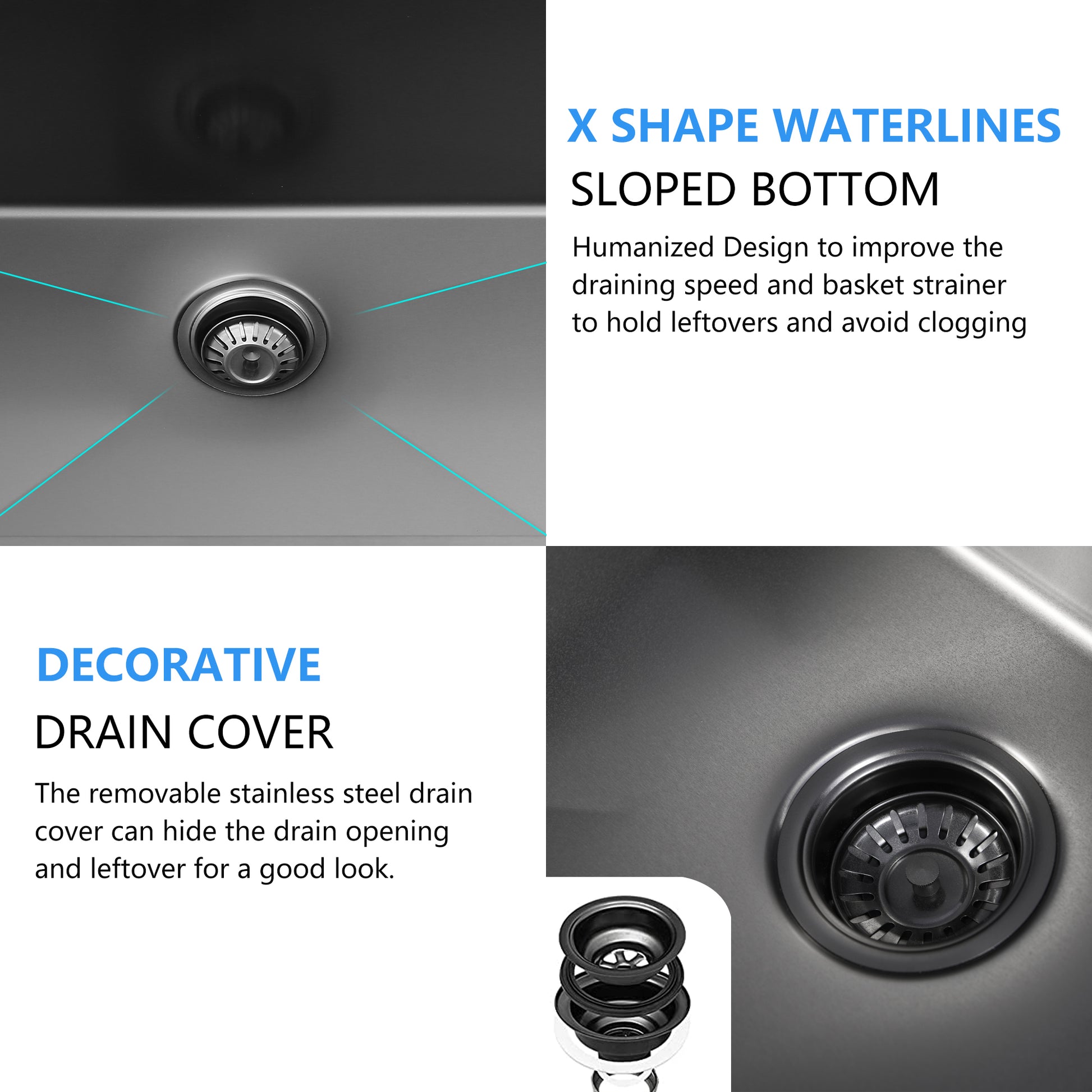 27" X 22" Drop In Kitchen Sink Gunmetal Black, 16 Gauge Stainless Steel Workstation Sink Black Stainless Steel