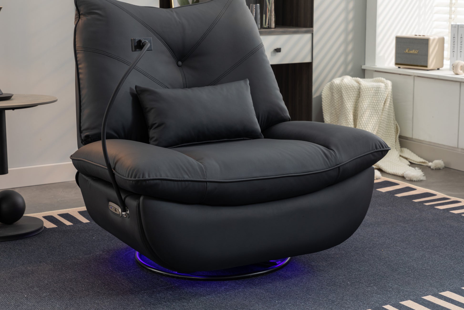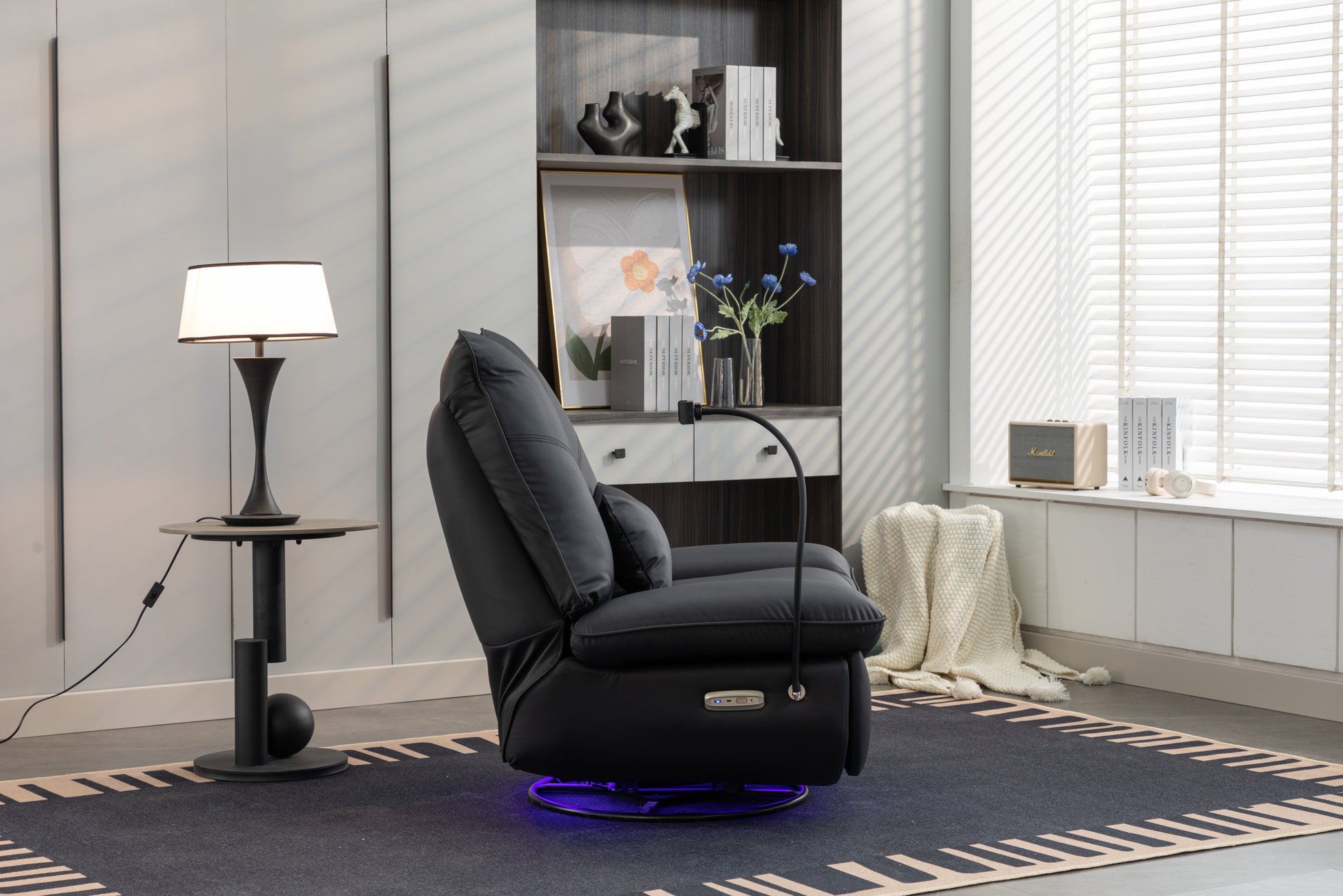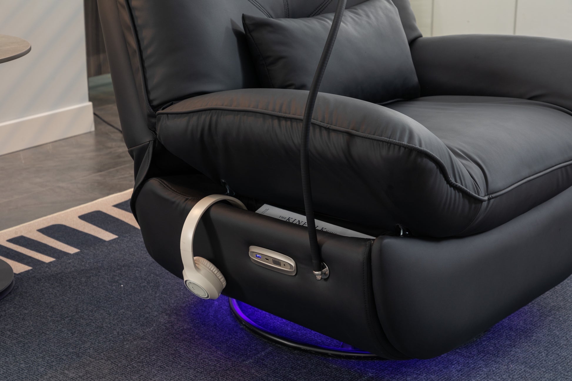 270 Swivel Glider Recliner Chair, Power Recliner Rocking Chair, Usb Port Charge For Nursery Chair With Atmosphere Lamp For Living Room Bedroom Apartment Black Faux Leather