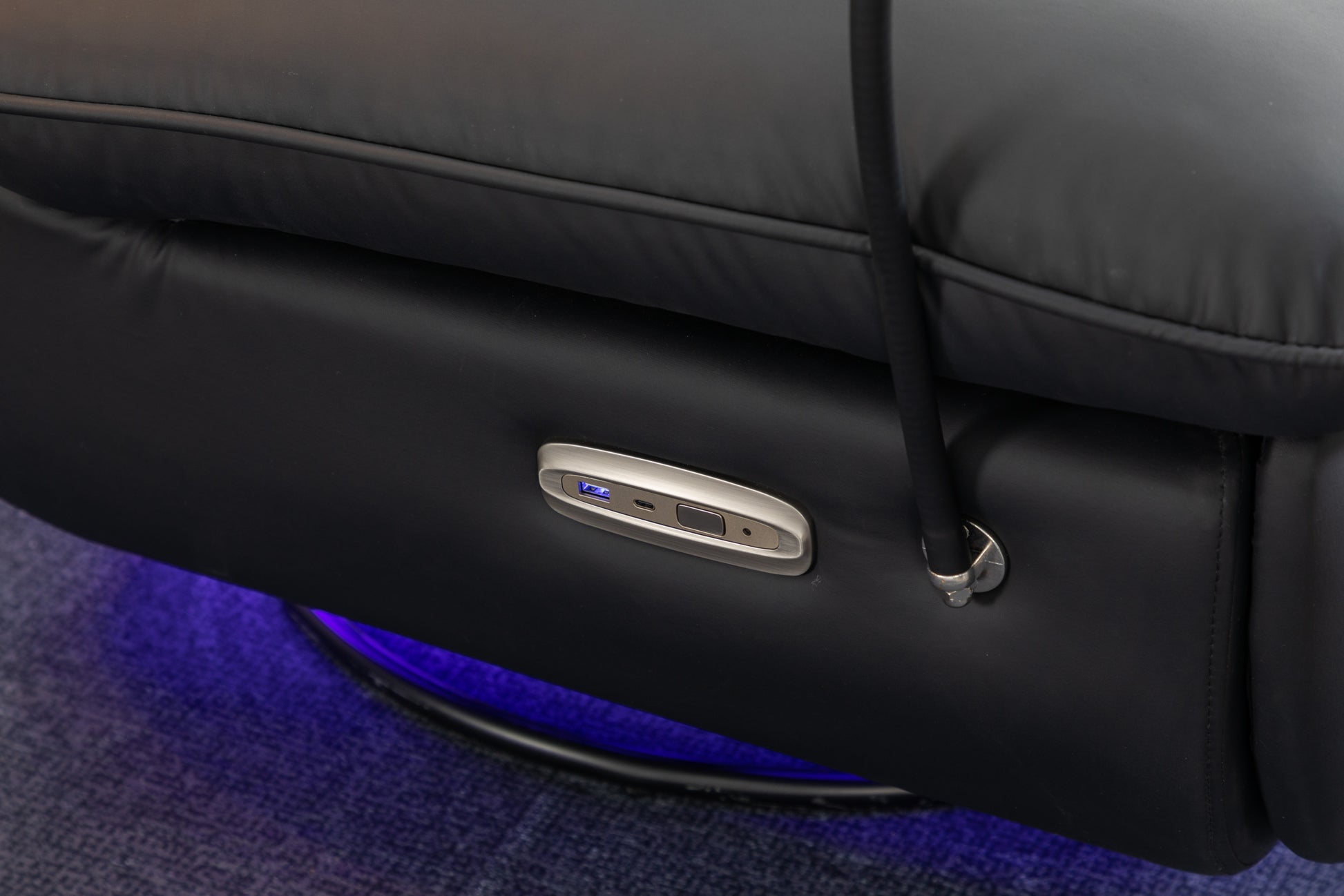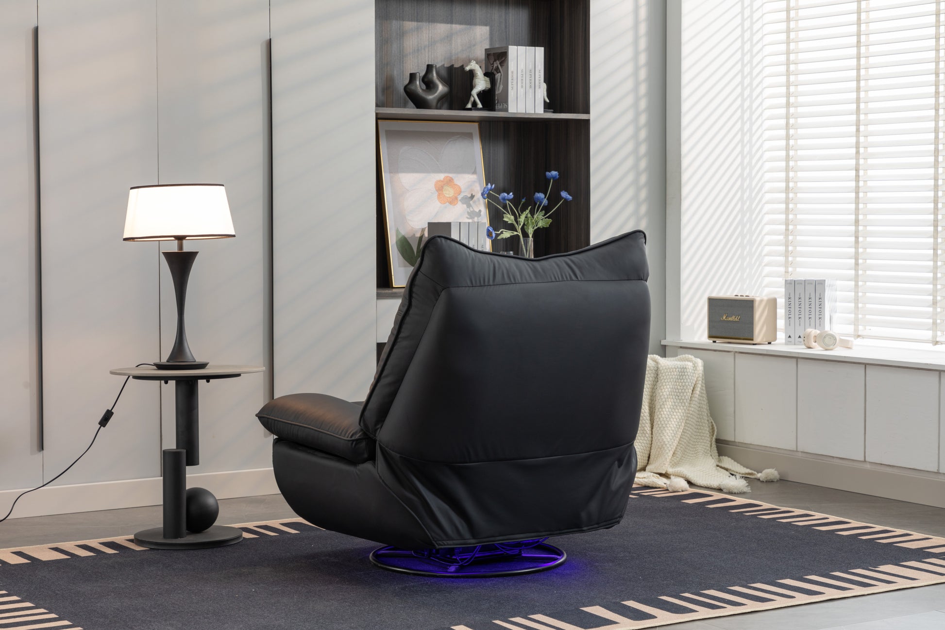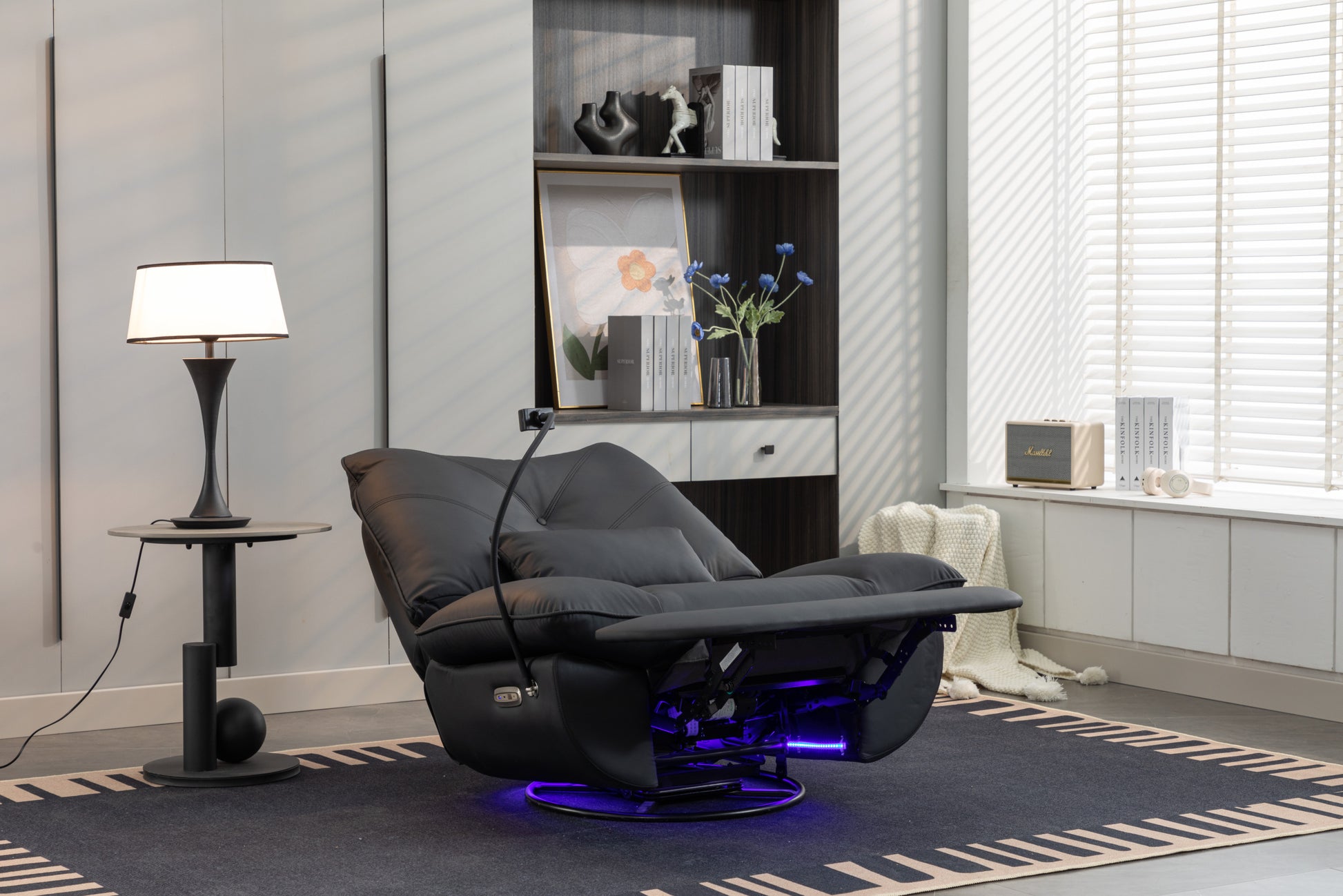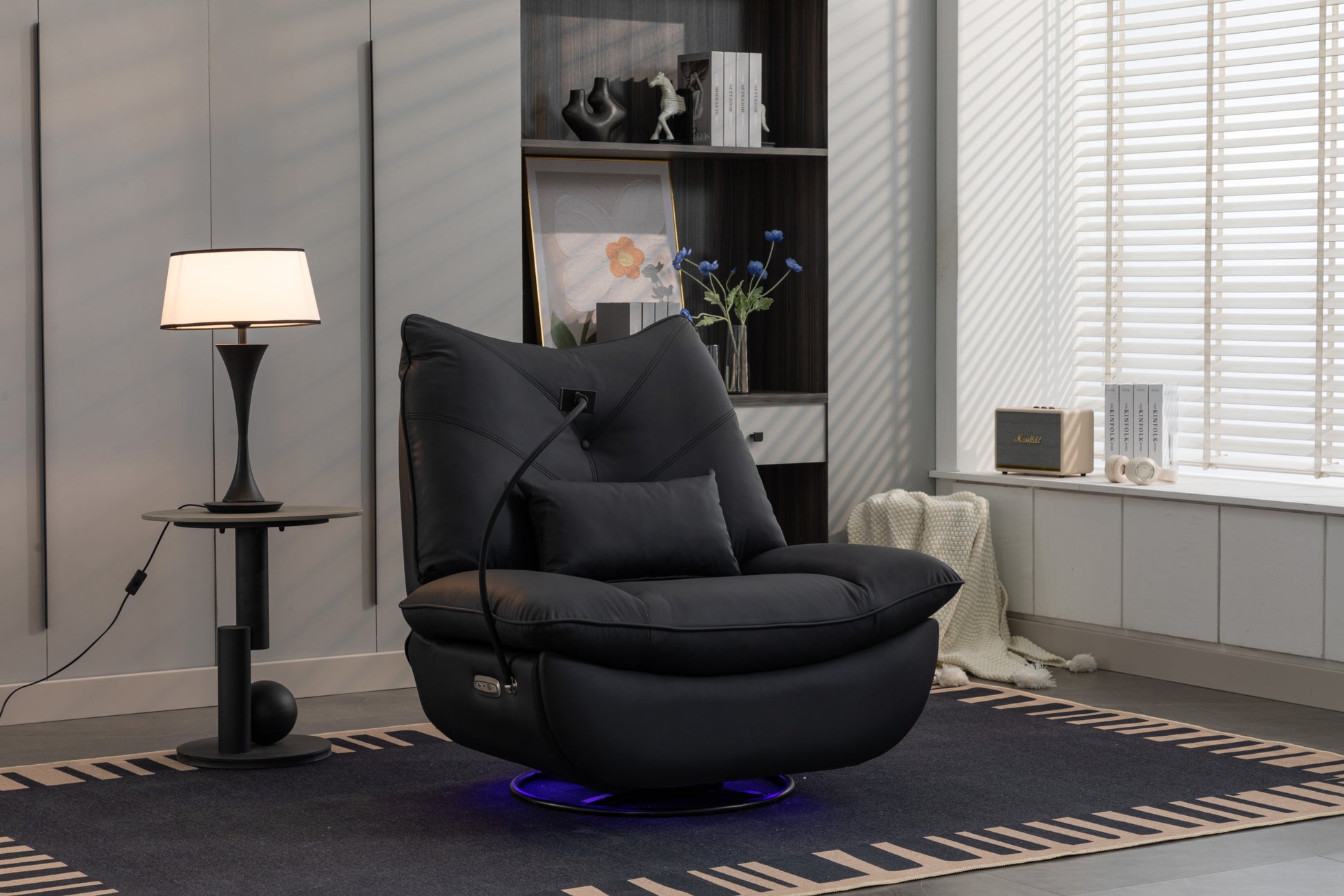 270 Swivel Glider Recliner Chair, Power Recliner Rocking Chair, Usb Port Charge For Nursery Chair With Atmosphere Lamp For Living Room Bedroom Apartment Black Faux Leather