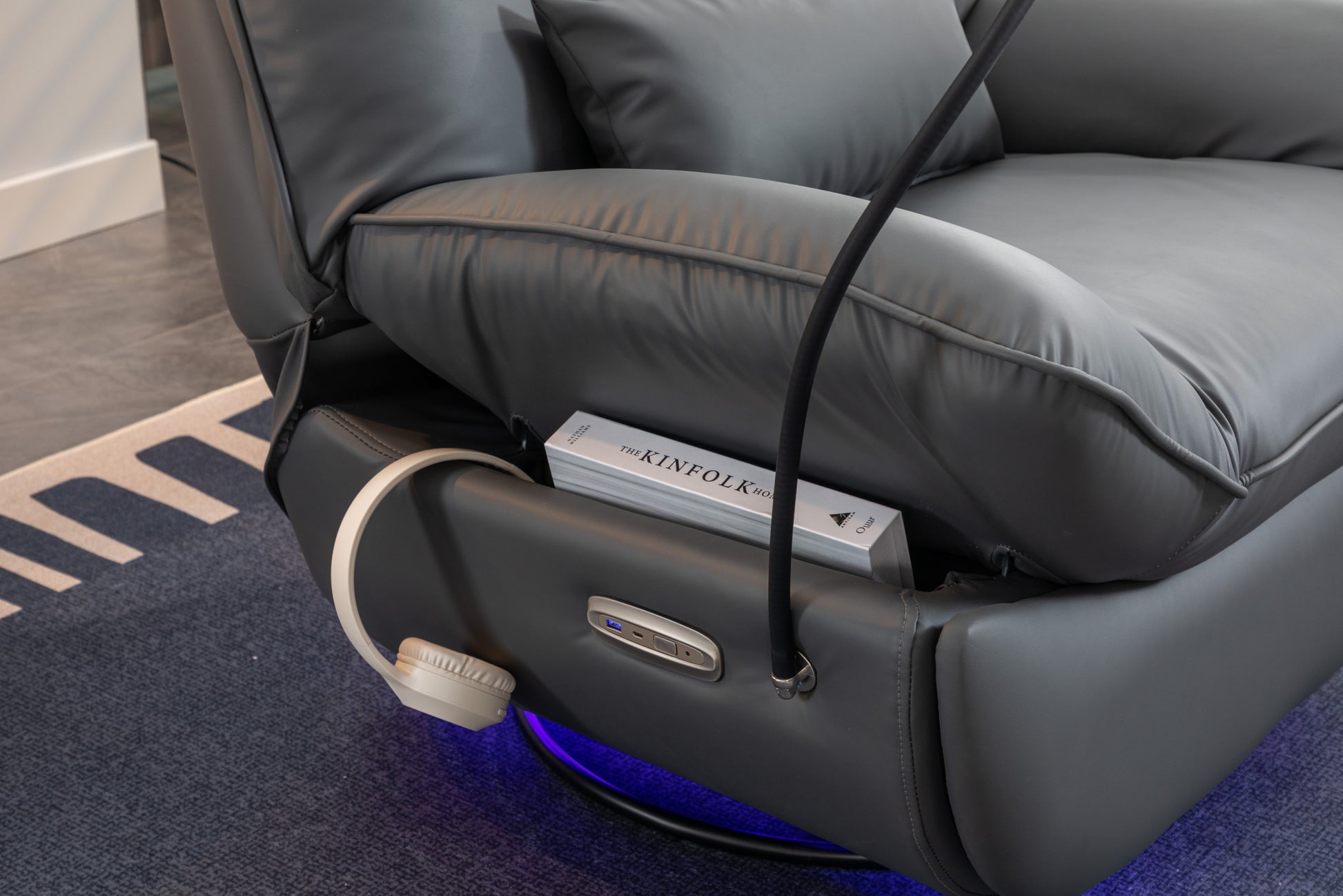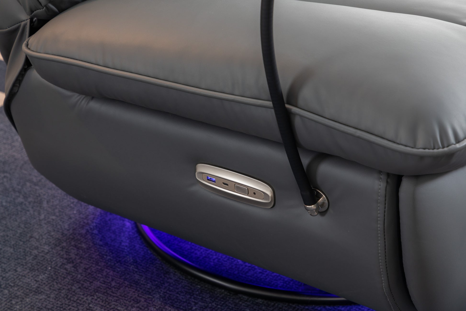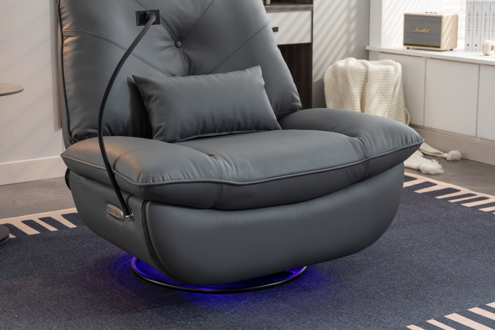 270 Swivel Glider Recliner Chair, Power Recliner Rocking Chair, Usb Port Charge For Nursery Chair With Atmosphere Lamp For Living Room Bedroom Apartment Dark Gray Faux Leather