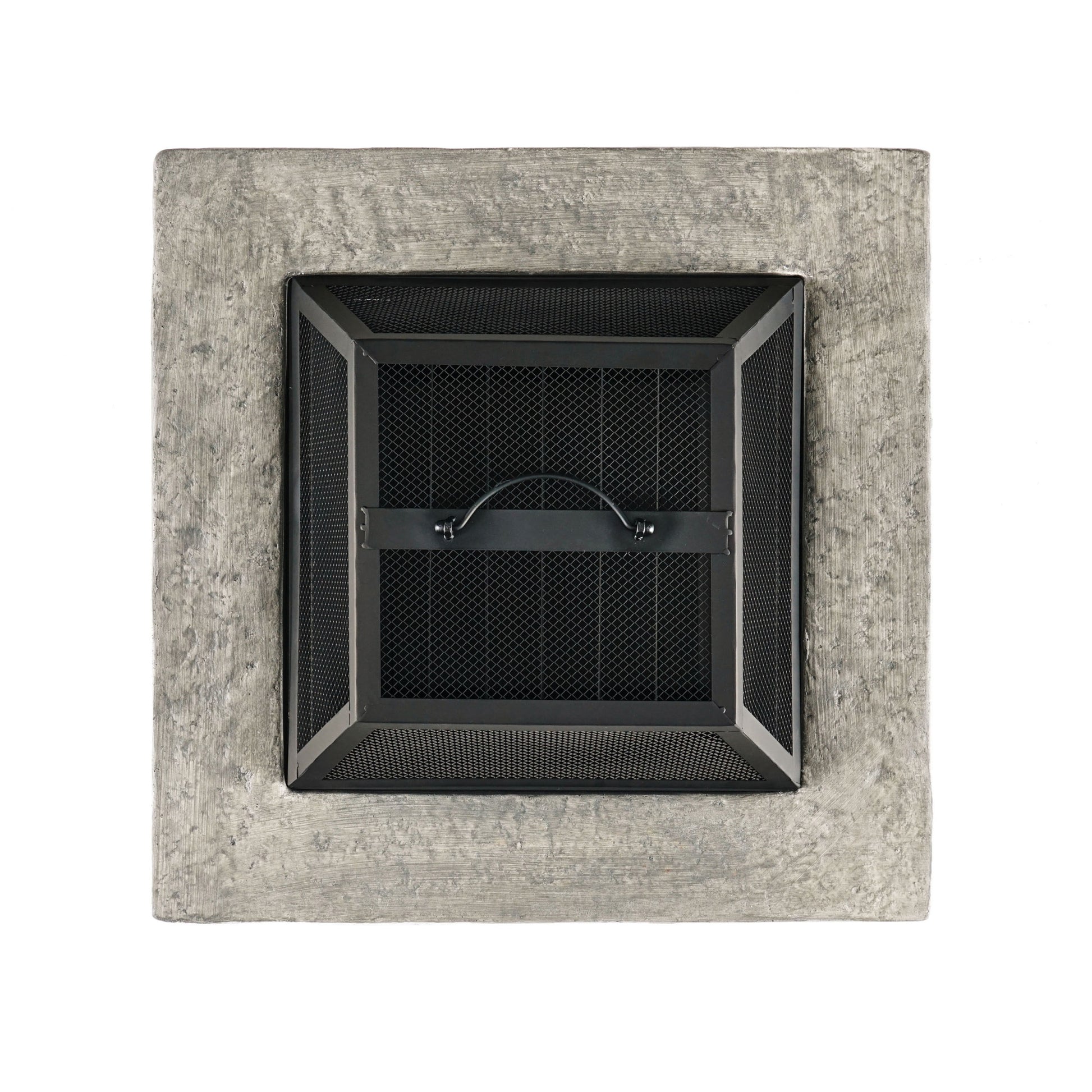 28" Concrete Wood Burning Outdoor Fire Pit Table With Lid Stone Gray Stone Gray Magnesium Oxide
