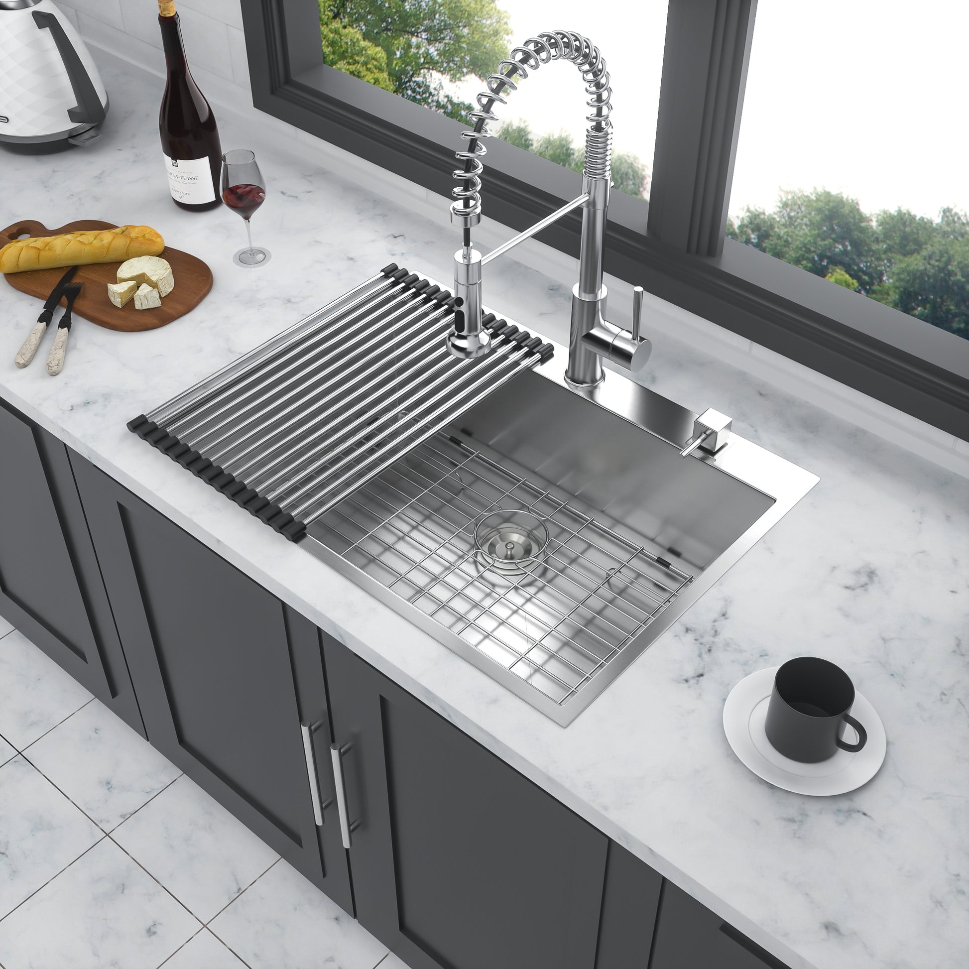 28 Inch Drop In Sink 28 Inch Kitchen Sink Drop In Topmount Single Bowl Sink 18 Gauge Stainless Steel Kitchen Sink Basin Brushed Nickel Stainless Steel