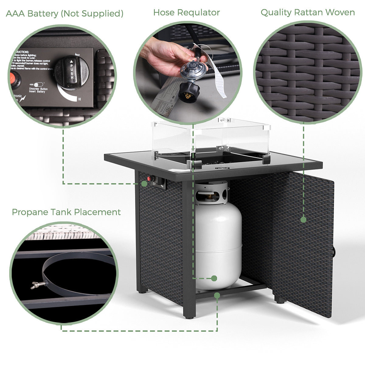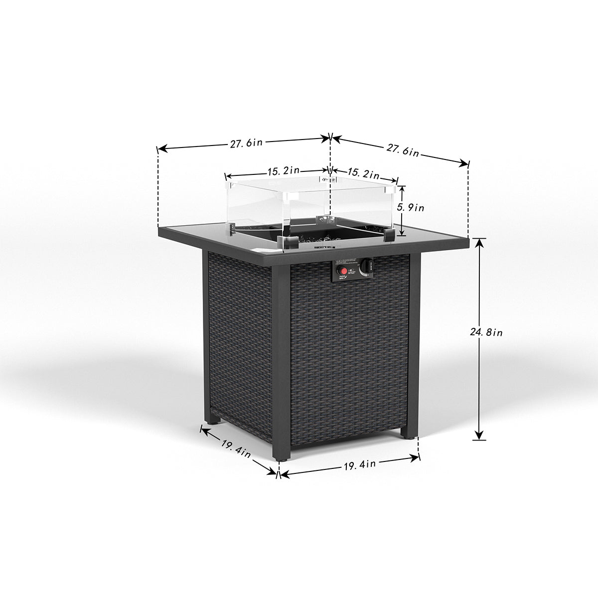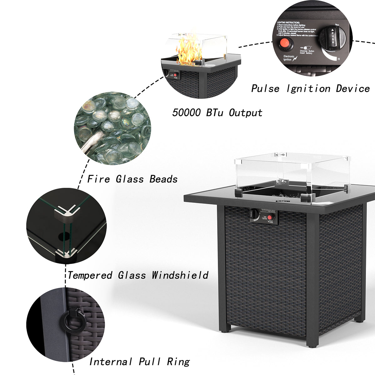 28 Inch Propane Fire Pit Table, Rattan & Wicker Look, 50000 Btu Gas Firepits Tempered Glass Tabletop With Glass Windscreen Protector For Outside Patio And Garden Coffee Coffee Garden & Outdoor