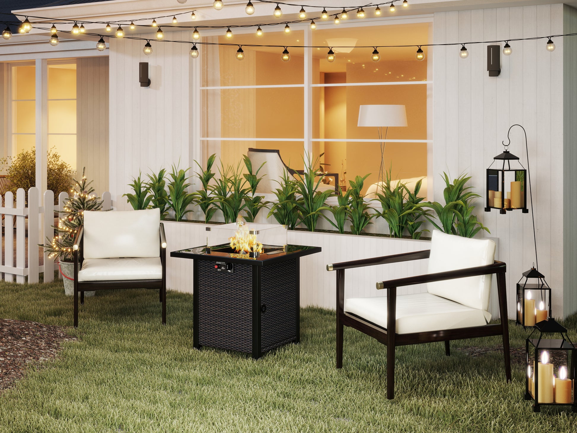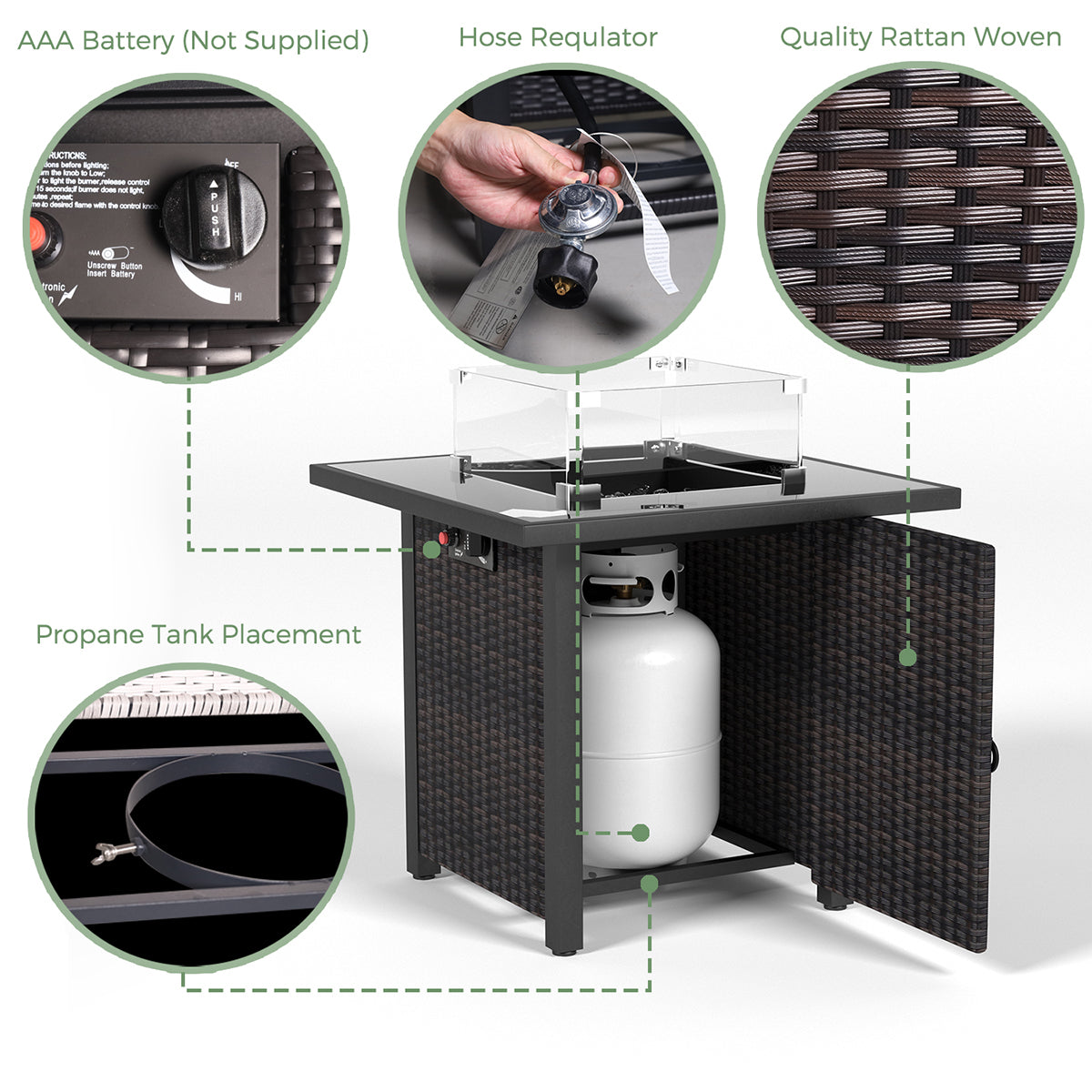 28 Inch Propane Fire Pit Table, Rattan & Wicker Look, 50000 Btu Gas Firepits Tempered Glass Tabletop With Glass Windscreen Protector For Outside Patio And Garden Brown Brown Garden & Outdoor