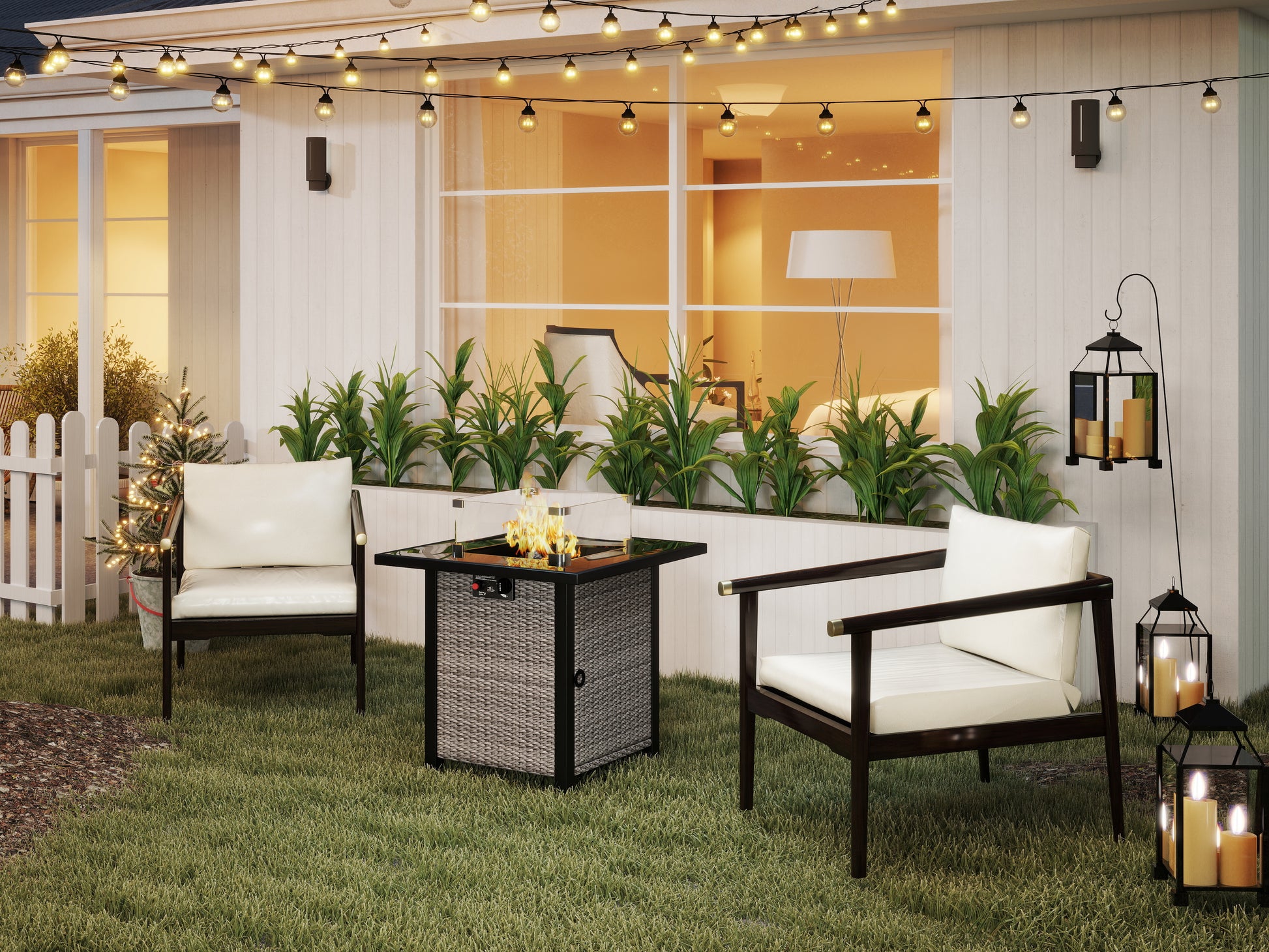 28 Inch Propane Fire Pit Table, Rattan & Wicker Look, 50000 Btu Gas Firepits Tempered Glass Tabletop With Glass Windscreen Protector For Outside Patio And Garden Grey White Grey White Garden &