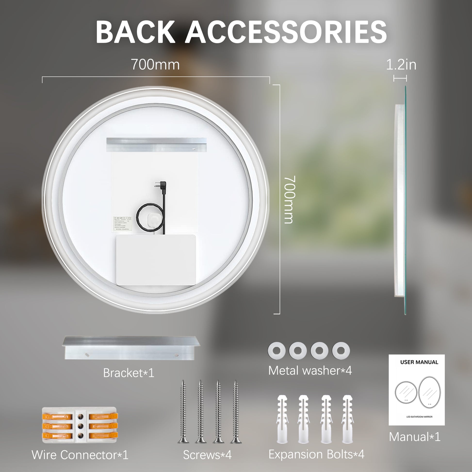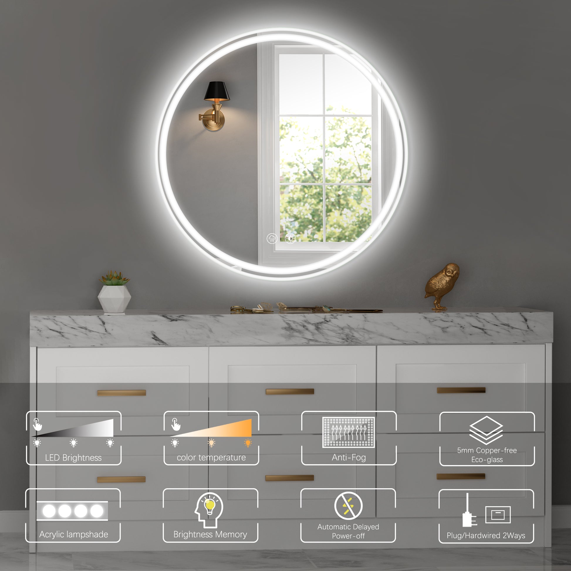 28" Round Led Bathroom Mirror Wall Mounted For Convenience White Black Aluminium,Tempered Glass