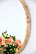 28" Round Wood Mirror, Wall Mounted Mirror Home Decor For Bathroom Living Room Brown Wood Glass