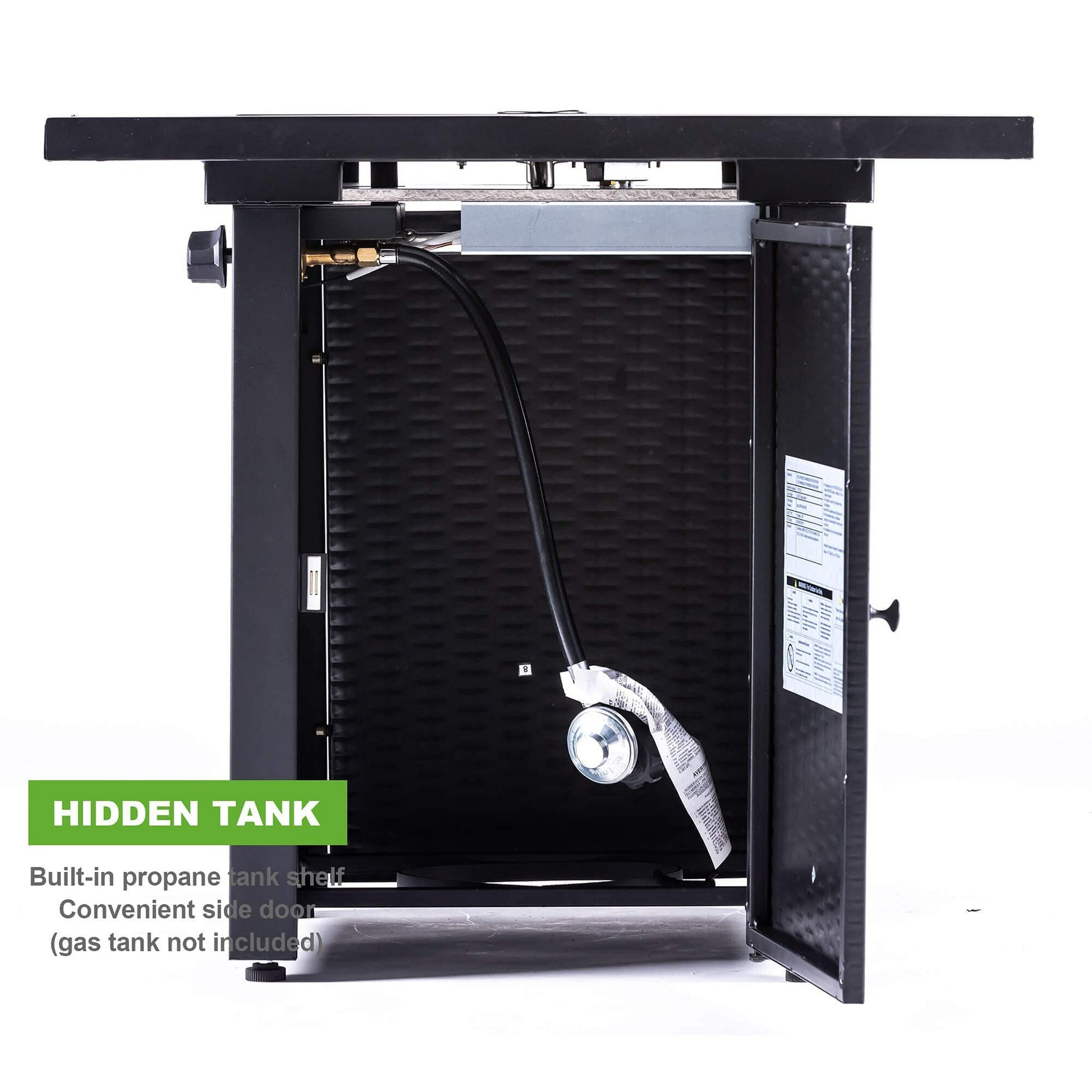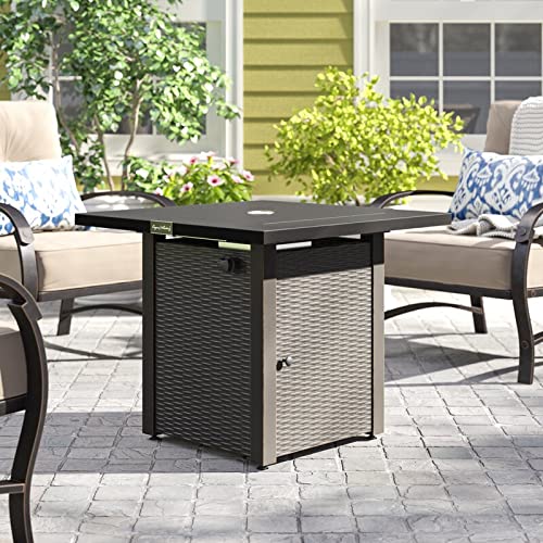 28In Outdoor Propane Fire Pit Table, 50,000Btu, Outside Gas Dinning Fire Table With Lid, Rattan & Wicker Look, Lava Stone, Etl Certification, With Adjustable Flame Apply To Garden Patio Backyard Black Metal