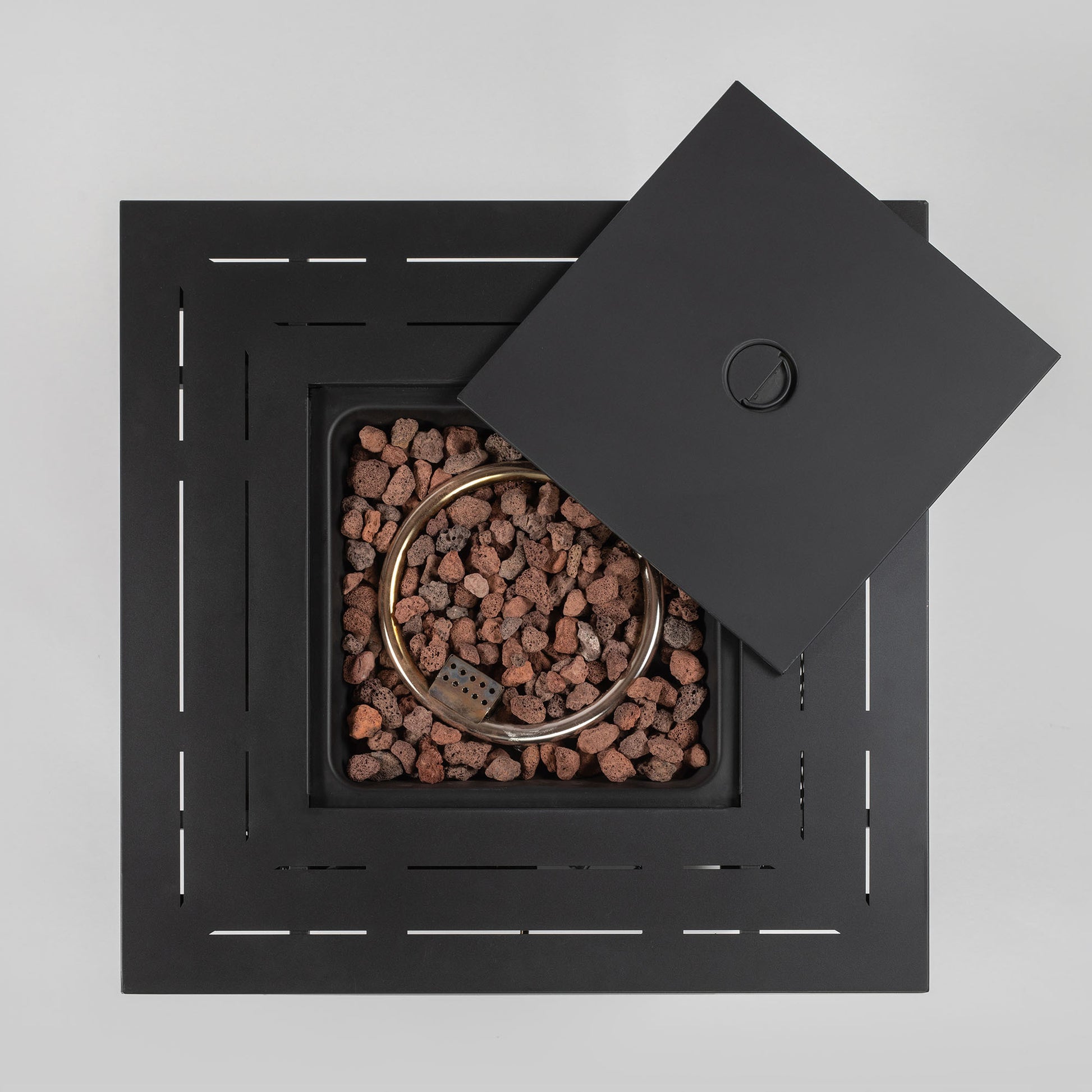 28Inch Wicker Square Fire Pit Table Black Brown Rattan