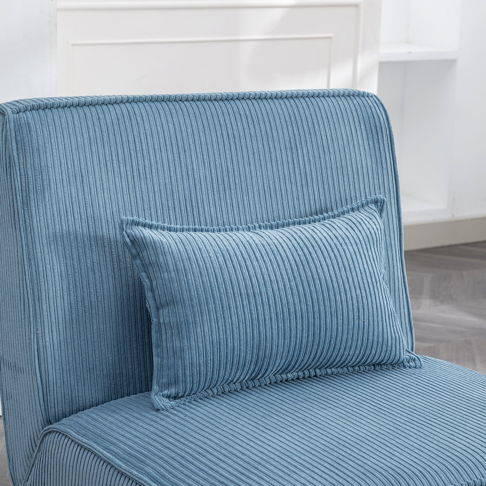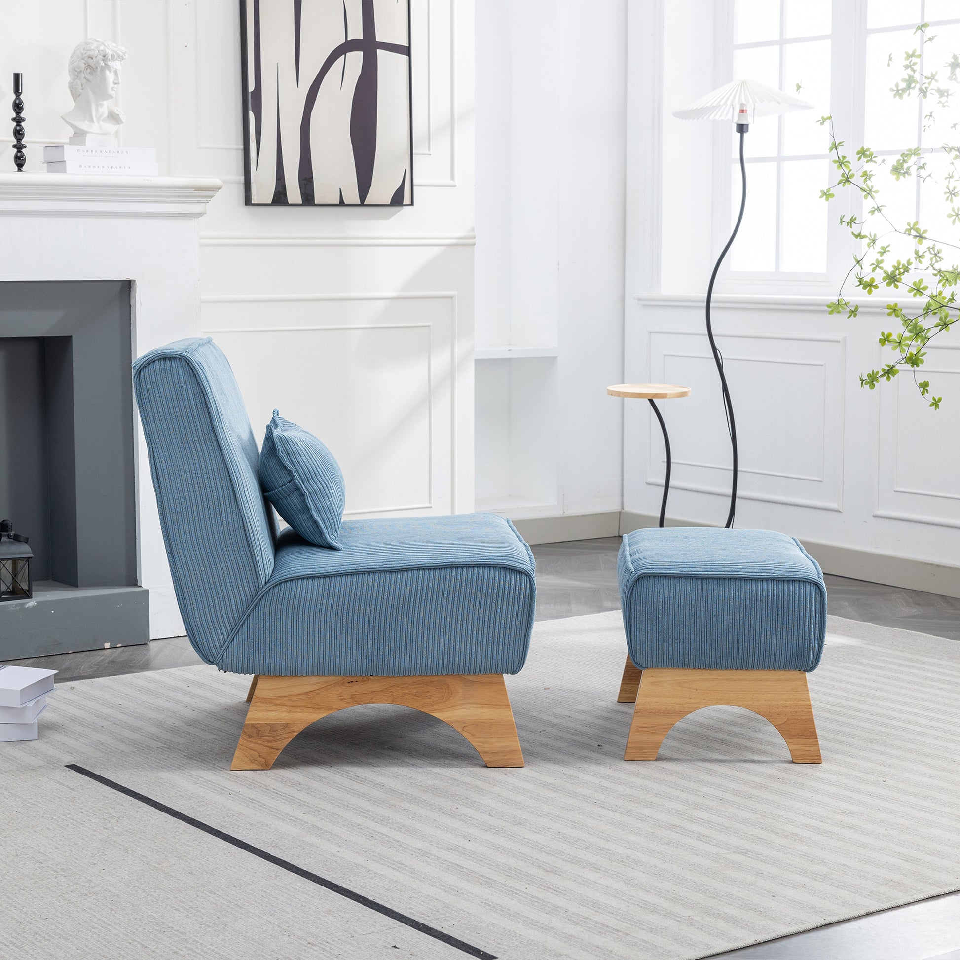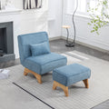 29.13" Wide Accent Chair With Ottoman Lounge Armless Chair Upholstered Reading Chair Single Sofa With Nature Wooden Leg And Throw Pillow For Living Room Bedroom Dorm Room Office, Blue Corduroy Blue Corduroy