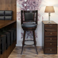 29 Inches Swivel Wooden Frame Counter Stool With Padded Back, Dark Brown Brown Solid Wood