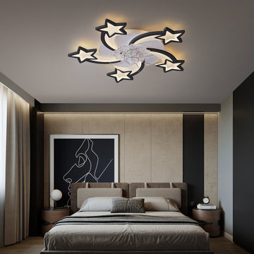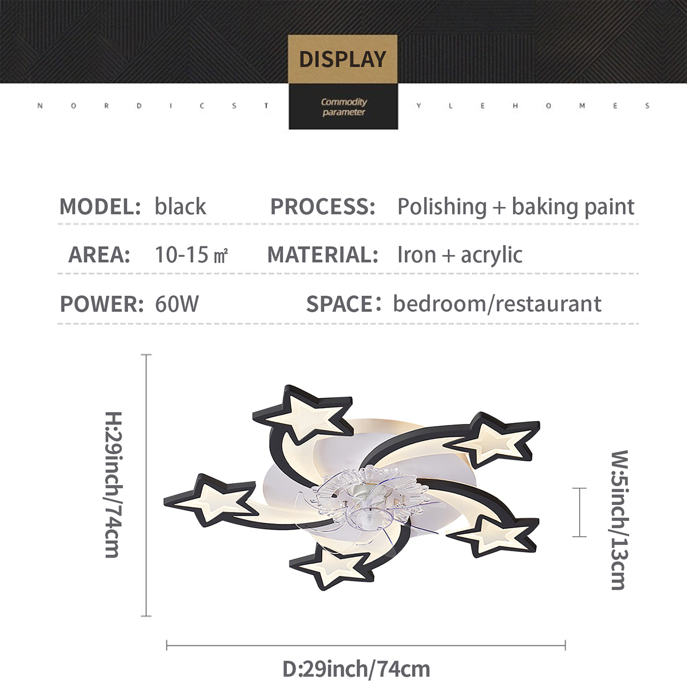 29Inches Ceiling Fan With Lights Remote Control Dimmable Led, 6 Gear Wind Speed Fan Light Black Modern Acrylic