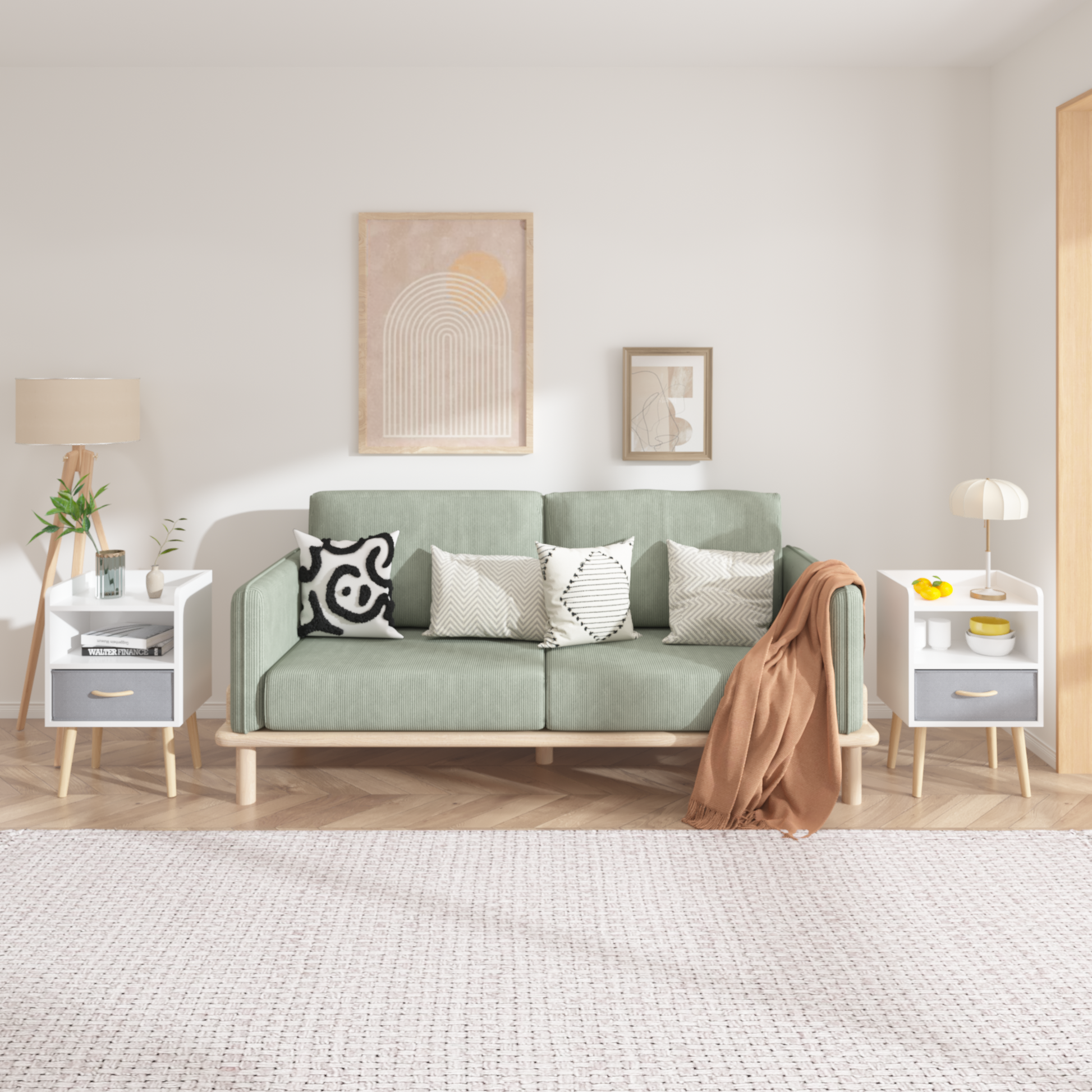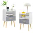 2Pc Nightstand With Collapsible Fabric Drawer, 2 Tier Storage End Table, Wood Side Table With Storage Cabinet For Bedroom, Living Room White White Engineered Wood