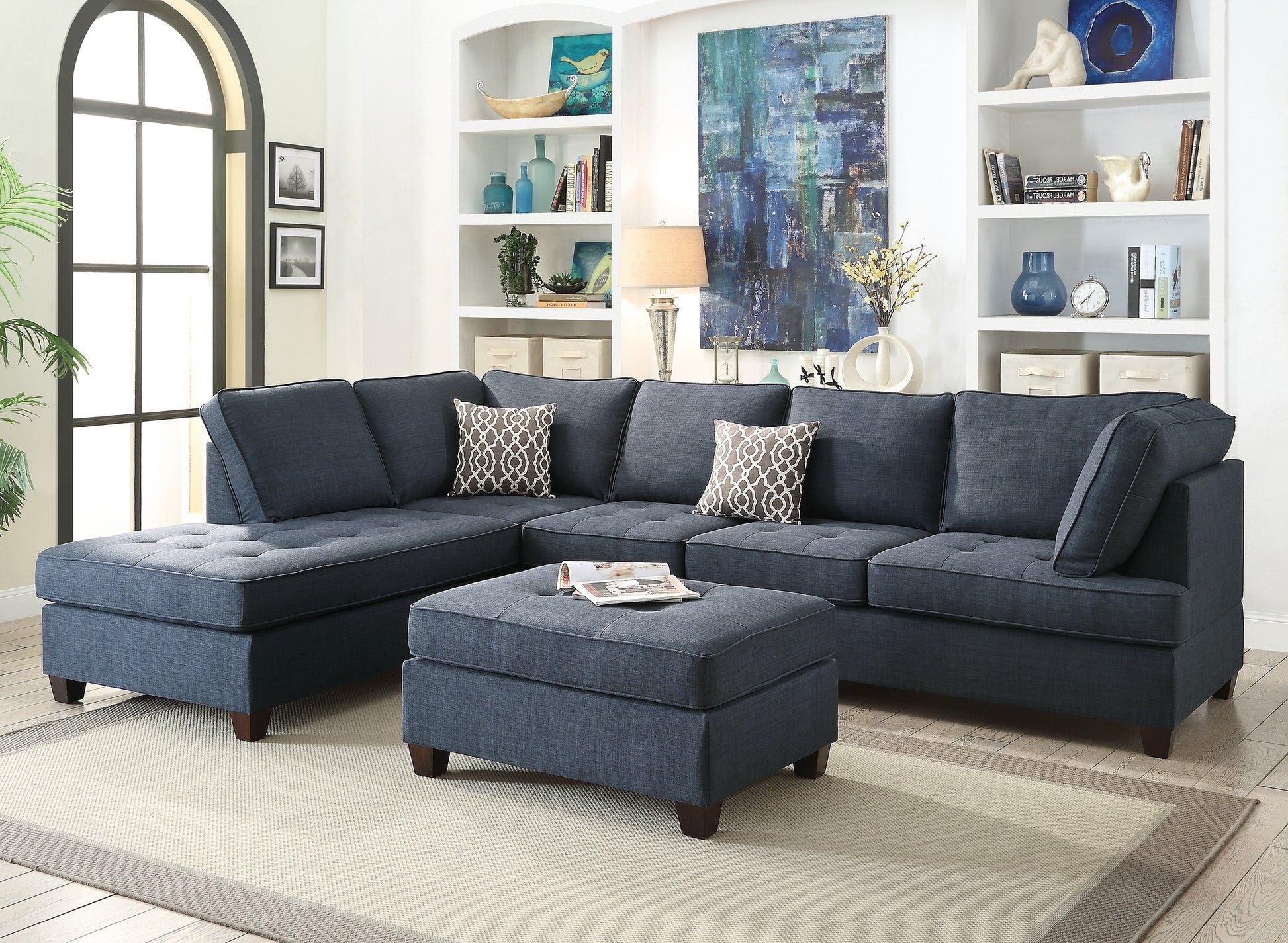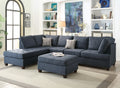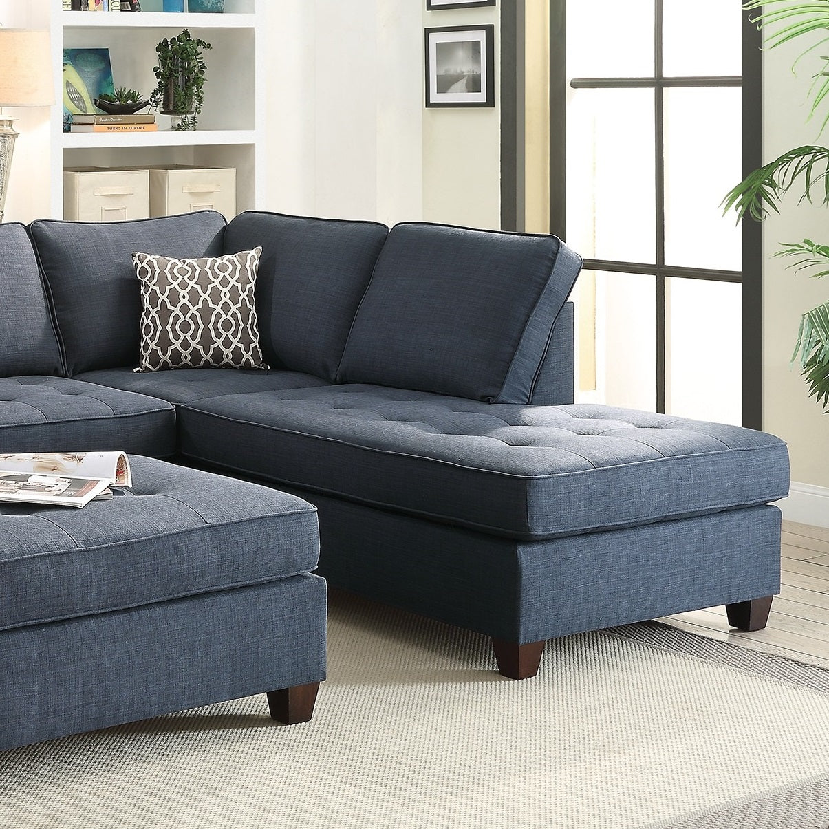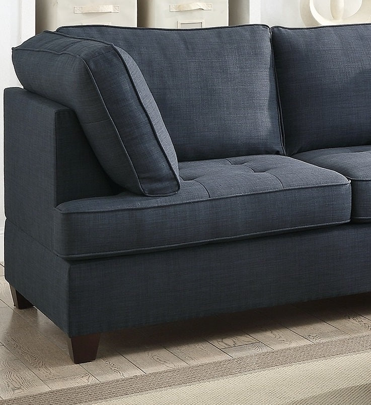 2Pc Sectional Sofa Set Reversible Chaise Sofa Dark Blue Dorris Fabric Living Room Furniture Couch Dark Blue Wood Primary Living Space Cushion Back Contemporary,Modern L Shaped Pillow Top Arms Particle Board 5 Seat