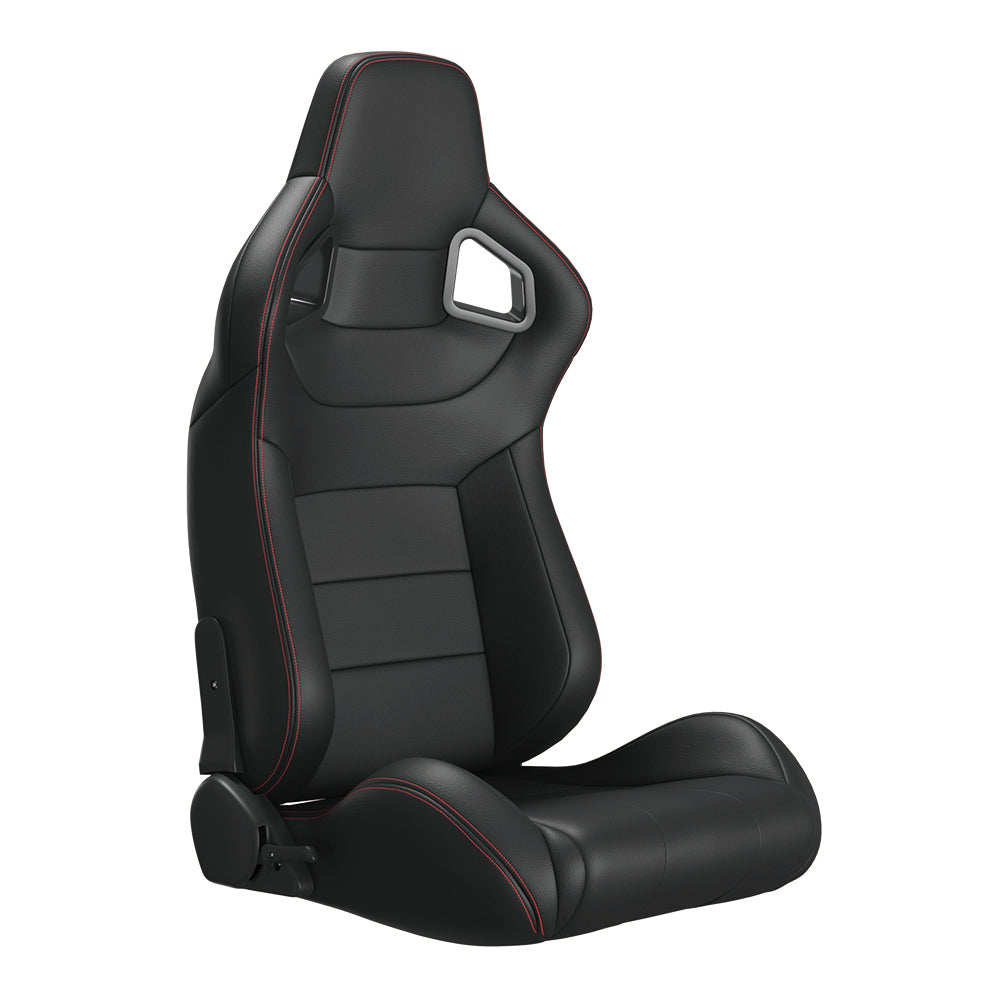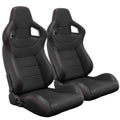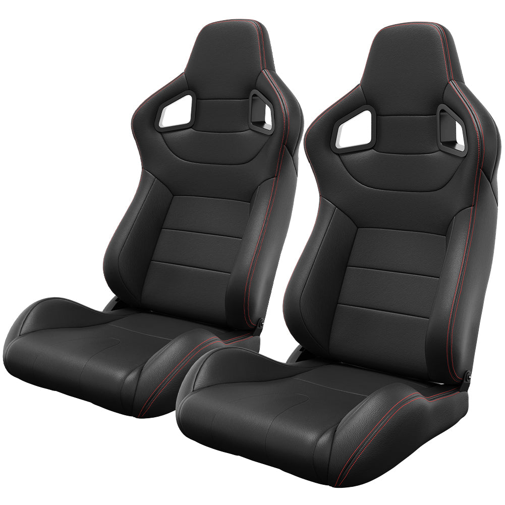 2Pc Universal Bucket Racing Seats Red Stitch Red Pvc Leather Reclinable Carbon Look Leather Back With Adjustor Slider Not Including Seat Bracket 1 Box Of 2 Pieces Black Pvc