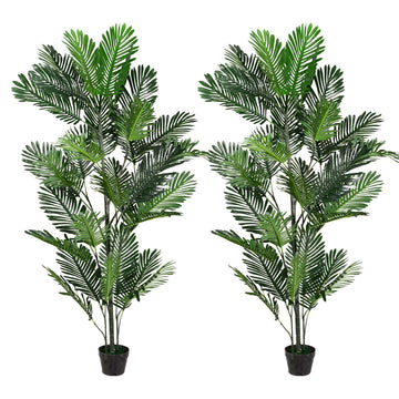 2Pcs Large Artificial Plants Fake Palm Tree Tropical Palm Leaves Faux Palm Plants Tall Tree Indoor Real Touch Plastic Monstera Leaves For Home Garden Outdoor Office Decor Green Plastic