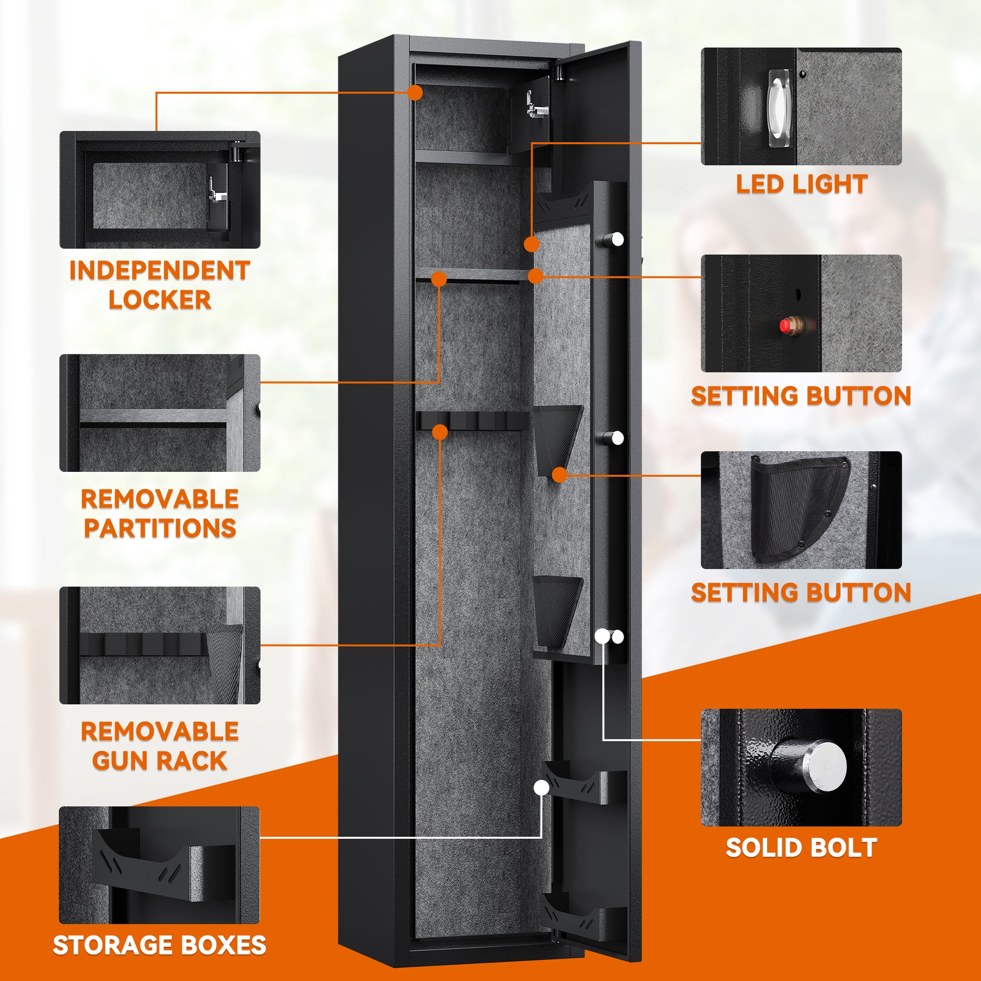 3 5 Safes For Home Rifles And Pistols With Inner Cabinet And Adjustable Shelf Black Steel
