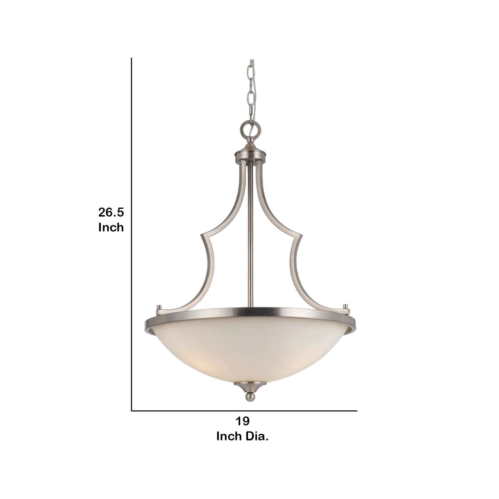 3 Bulb Bowl Style Glass Pendant Fixture With Metal Frame, Silver And White White Silver Glass Metal