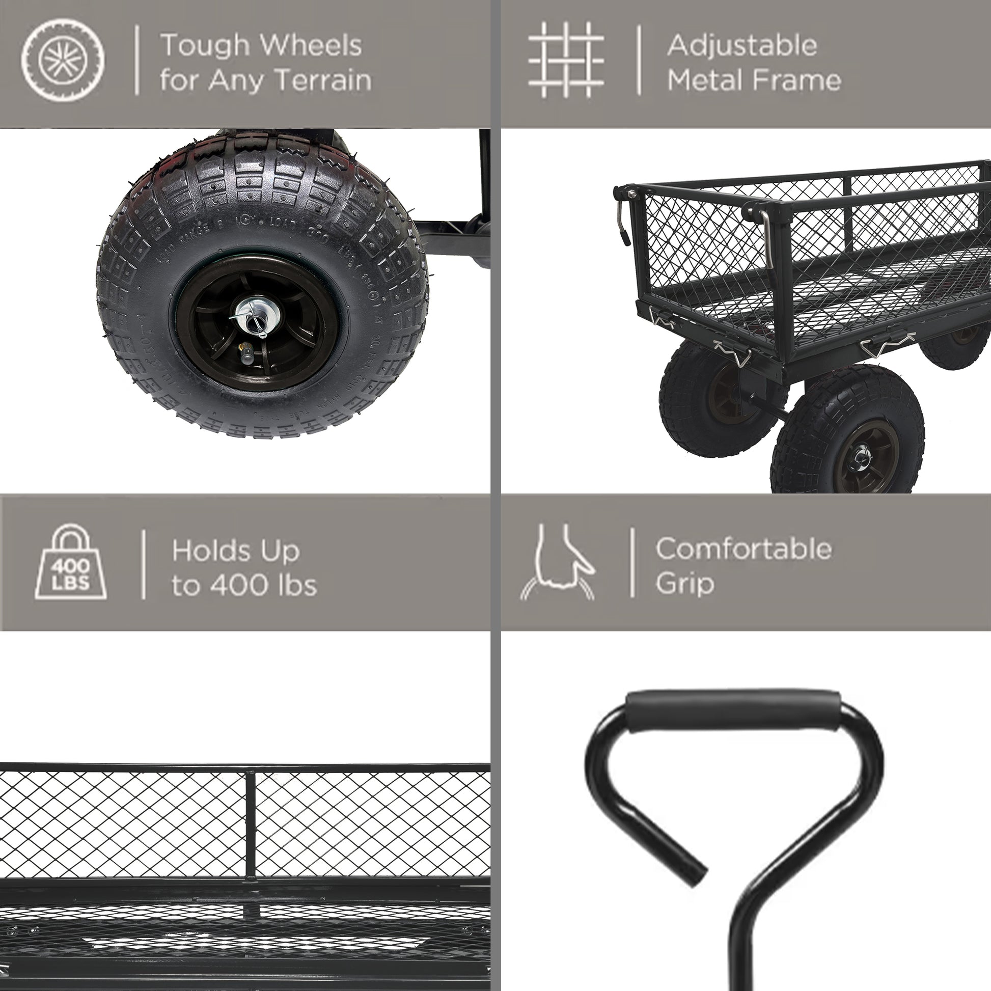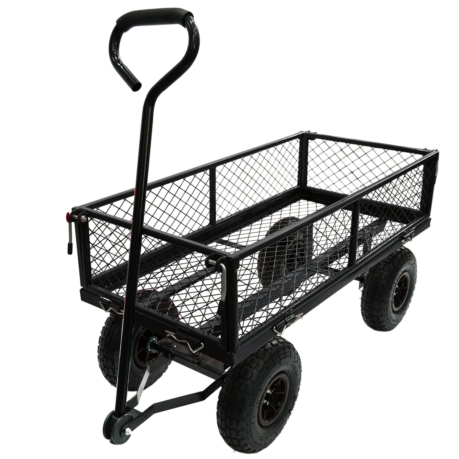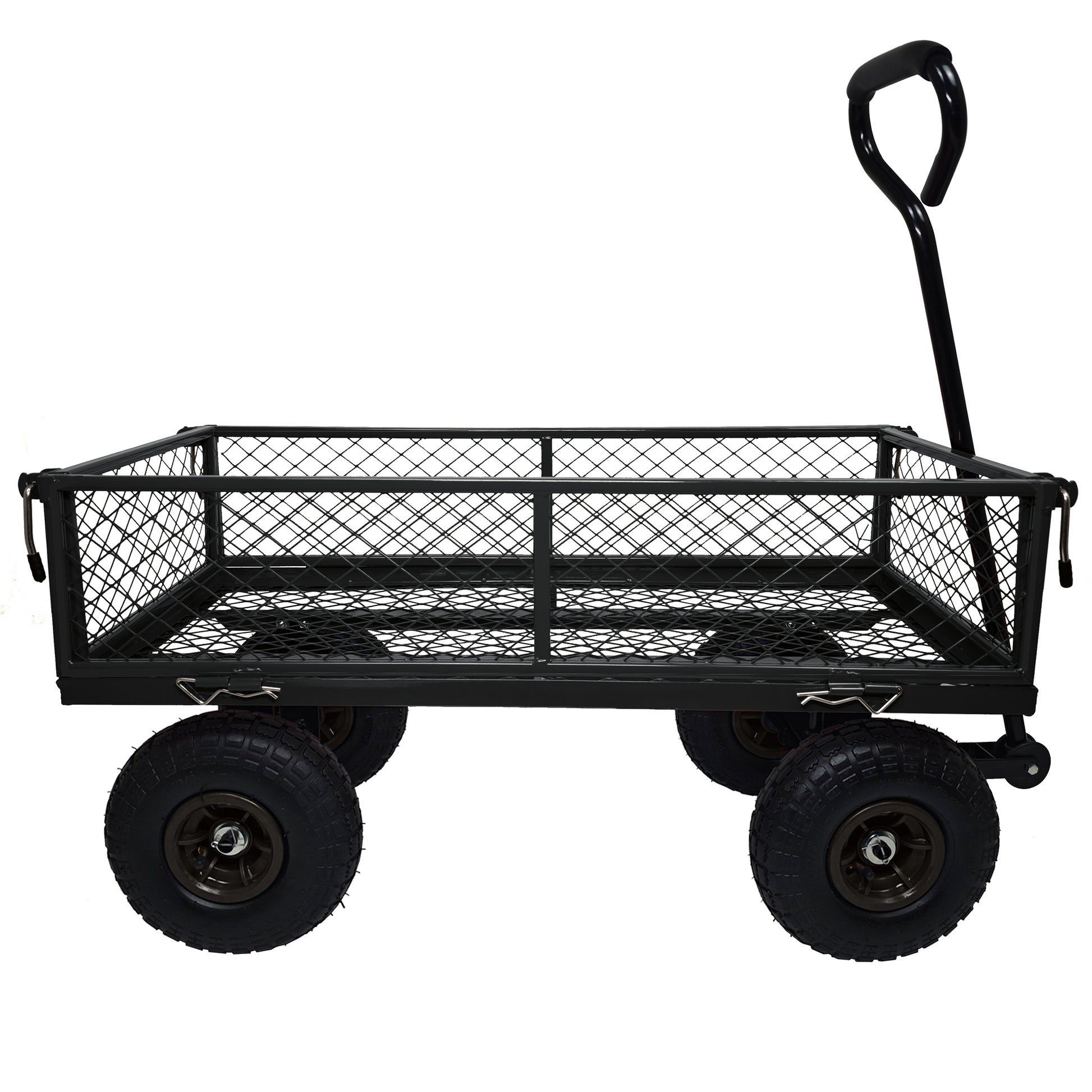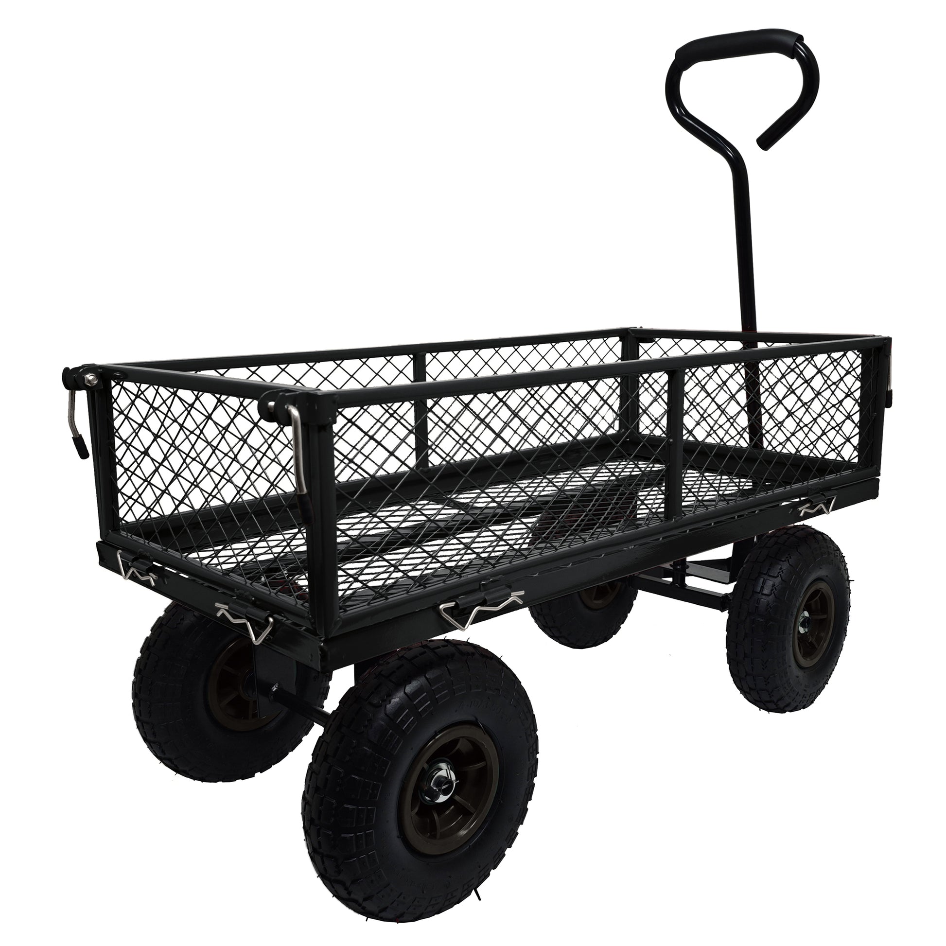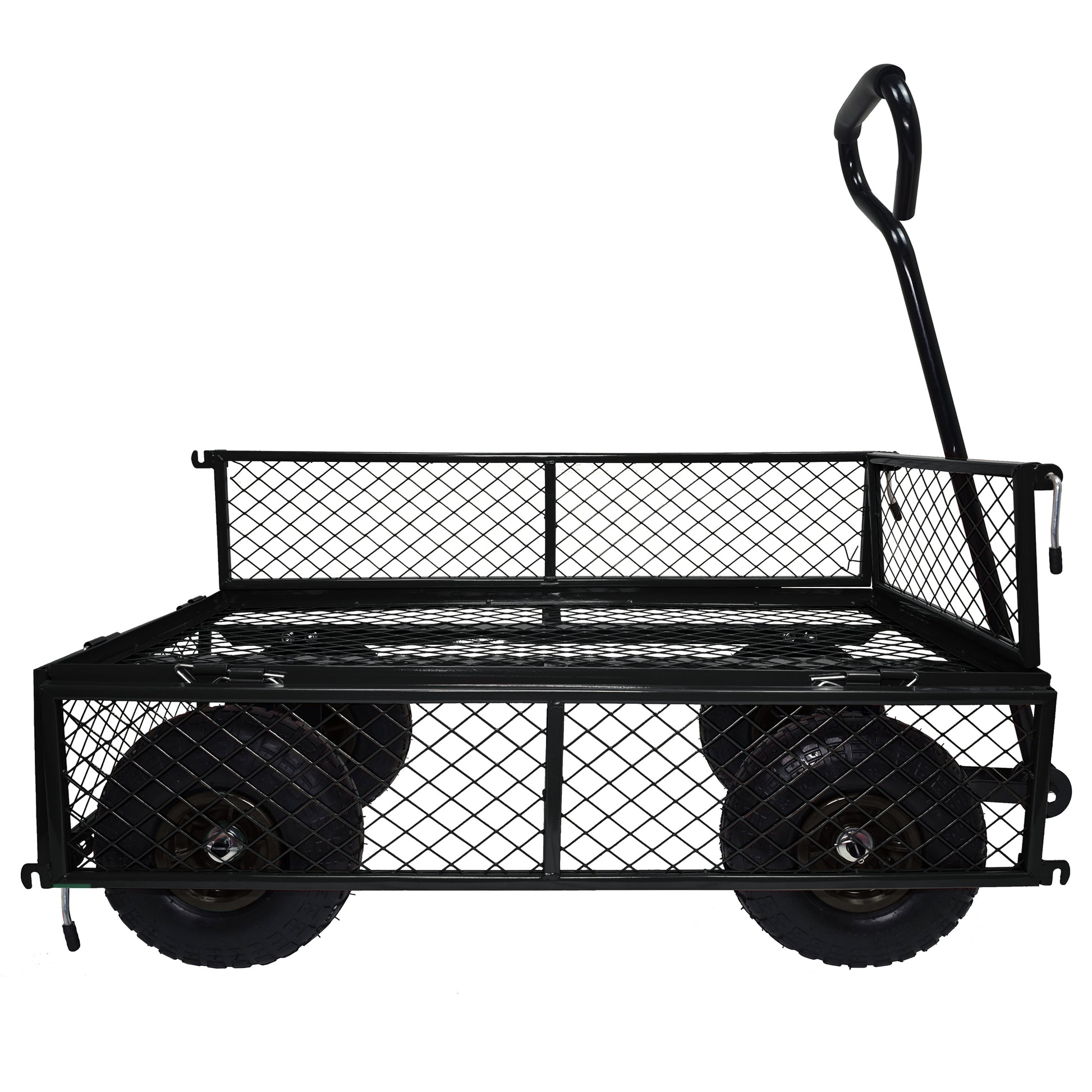 3 Cu. Ft. 300 Lbs. Capacity Removable Sides Metal Steel Mesh Heavy Duty Utility Wagon Outdoor Garden Cart In Black Black Steel