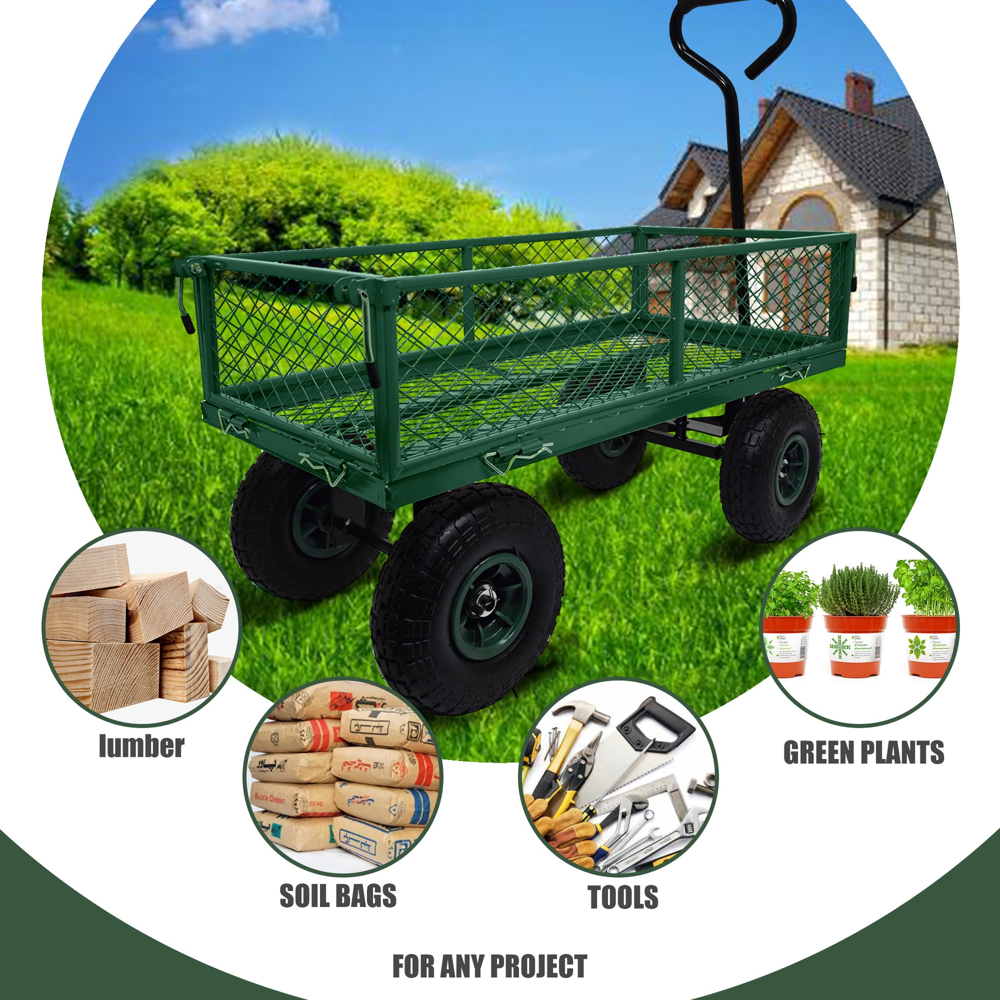 3 Cu. Ft. 300 Lbs. Capacity Removable Sides Metal Steel Mesh Heavy Duty Utility Wagon Outdoor Garden Cart In Green Green Steel